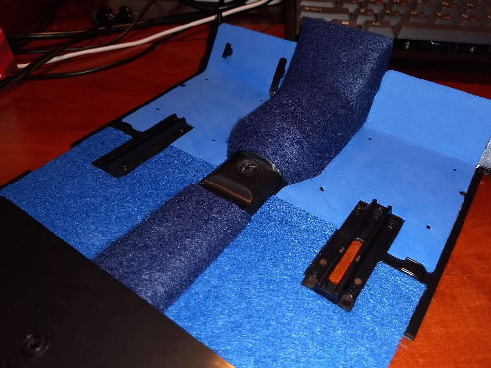 Если без тоннеля, то можно и просто черный мышиный коврик потоньше. А вот если тоннель, то там желательно в 2D полностью повторить 3D форму, а иначе все это не прилепить и держаться не будет. Миллиметровый фетровый вариант, по сути, тот же классический войлок. Осталось спереди нашлепки убрать и буде...