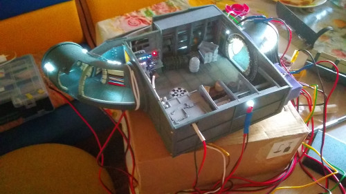 Звёздный крейсер Андромеда, из одноимённого сериала))), створки делал из родных, резал с небольшим смещением, угол открывания створок тоже разный, в ВК выкладывал более детальные фото