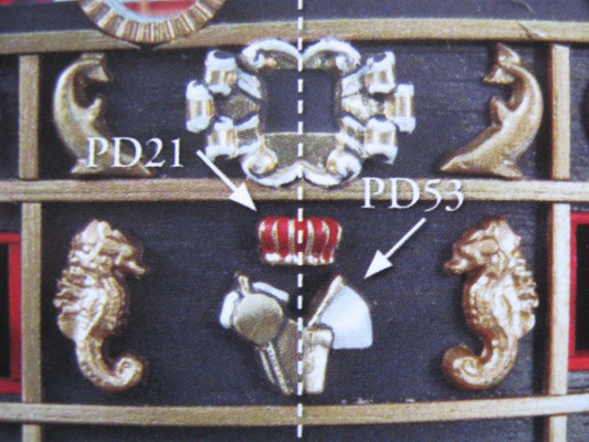 Добрый всем вечер! По поводу полустволов, присланных ДеА, не вижу особых проблем, я установил на гондек 18 полупушек, стволы выступают за борт на 4 мм.,смотрятся не плохо, при желании их можно выдвинуть ещё на 1-1.5 мм. Полистал литературу, полазил по инету, в итоге по полученной информации (длинна 36-ти фунтовой пушки, толщина борта в районе гондека) прикинул, что ствол пушки выступал за борт не более чем на 0,4 м., что в нашем масштабе соответствует 5мм. Полустволы насаживаю на зубочистку нужной длинны, что позволяет регулировать выступ.