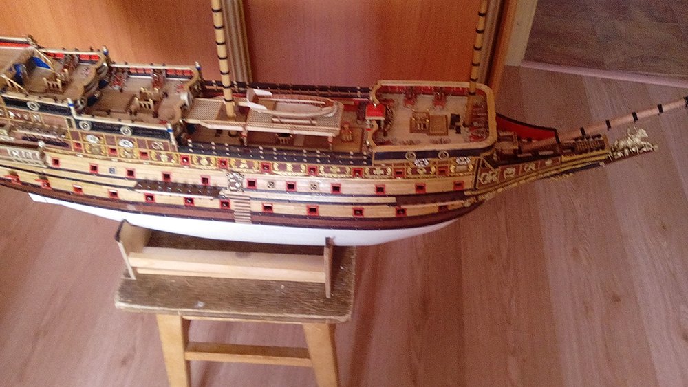 Добрый день. Завидую, модель получилась супер, хотел бы узнать как свивались в бухты канаты талей пушек на палубе, что и в какой последовательности ставилось и крепилась в первую очередь, каким клеем закрепляете, пушку на палубу, каким канат, если не сложно объясните, обвязку буду делать впервые, вот и хочется узнать побольше, спасибо.