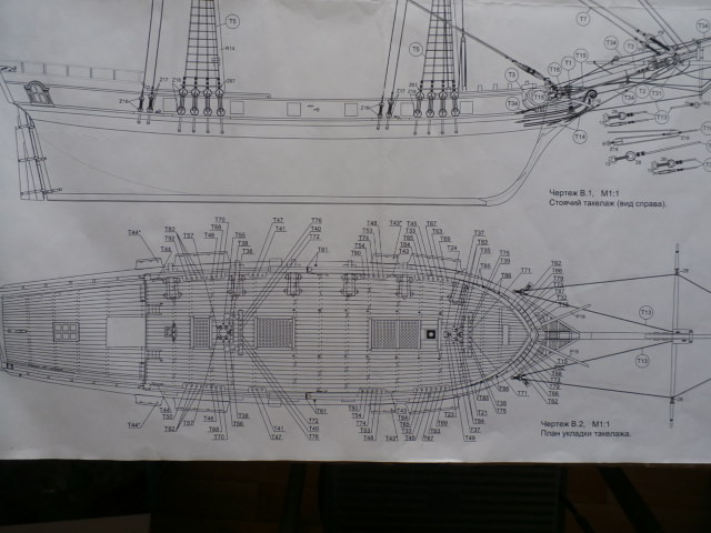 - Просто откройте Постер который подарила ДеА нам в первом номере журнала и внимательно приглядитесь к русленю грот мачты модели ДеА, напечатанном в постере. На фоне темных вант с выбленками на руслене грот-мачты выделяются две ванты с длинными светлыми талрепами Они начинаются от двухшкивного блока блока на руслене и заканчиваются под марсовой площадкой грот-мачты. Точно так же выделяются две светлые ванты и на руслене фок-мачты! А на руслене бизани - только одна светлая. Выделяются они прежде всего очень длинными и светлыми талрепами, где в место юферсов заправлены двух шкивные блоки! Я ни чему не настаиваю, просто думаю , что на первом варианте постройки и обкатки нашего проекта разработчики ДеА установили у своей модели в наши отверстия в русленых площадках эти самые блоки, сфотографировали, но потом пошло что то не так, возможно просто сэкономили уж не знаю. Фотоаппарат же зафиксировал в постере этот вариант, а в журнале, же получилось по другому. Прошло время. Сейчас уже трудно что либо об"яснить человеку со стороны. Но вариант для нас очень интересный и возможно кто либо воспользуется именно этим вариантом. Ну а насчет историчности? Сказать трудно... Чем и прекрасен наш с вами корабль? Чем меньше исторических документов и чертежей, тем больше полета фантазии для судомоделиста! Вы В.А. правы: - "у нас для проводки драй-репа грота , фока реев и рю позади мачт установлены кнехты с двушкивными блоками.Что касается подъёма/опускания реев стеньг там устройства были проще и их ходовые концы шли через "собачью дыру" и крепились либо на марсах, либо на палубе. В литературе в основном описываются драйрепы реев нижних мачт, что касается реев на стеньгах подробных описаний я не нашёл." -