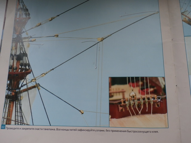 Думаю, вы не обратили внимания, что в журнале в "Инструкции по сборке"при строительстве модели, частности при работе с такелажем на фотографиях разработчики проекта патворка рисуют рядом с узелком белый такой бантик, и указывают в пояснениях, что мол "зафиксируйте с помощью быстросохнущего клея." Или же пишут: "Все концы нитей зафиксируйте узлами , без применения быстросохнущего клея." Обычно там где завязано без клея мастер оставляет (завязывает узел с расчетом, что его - узел можно будет развязать в будущем без проблем) а на этом узелке оставляет (привязывая) яркую цветную нить. После сборки такелажа эти узелки можно будет развязывать - регулируя силу натяжения и уж затем можно узел зафиксировать секундным клеем - на постоянно и убрать метку - цветную нить. Удачи Вам и конечно Здоровья!