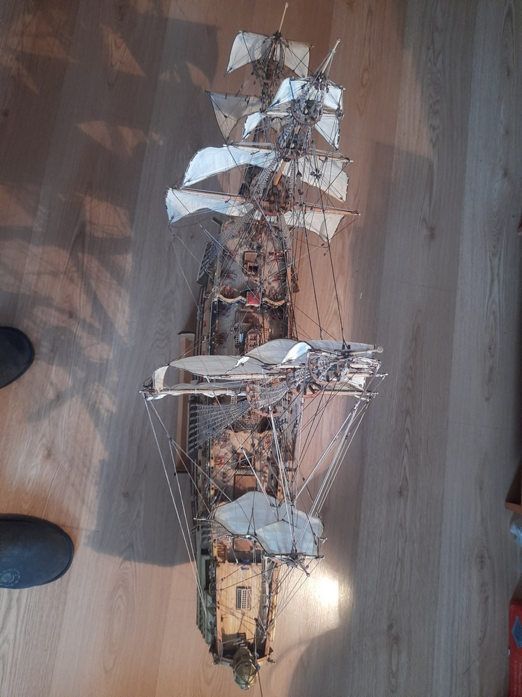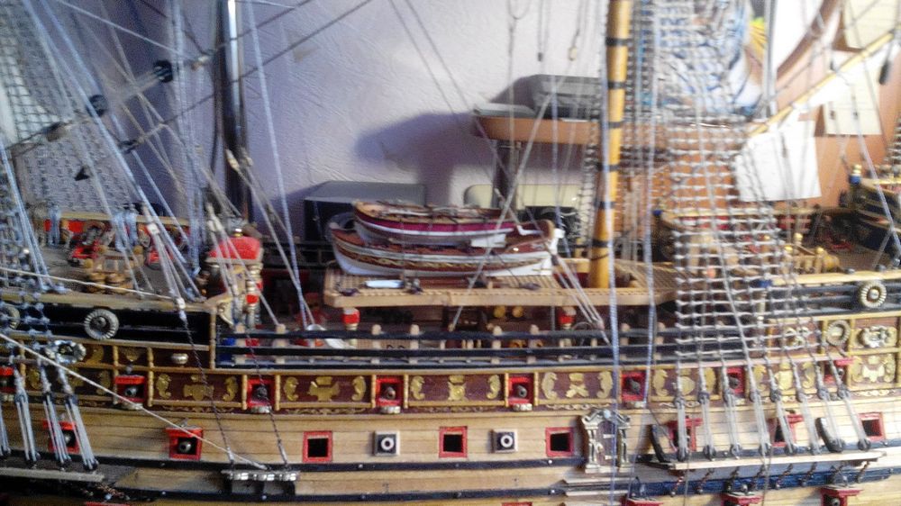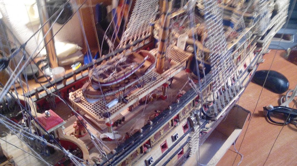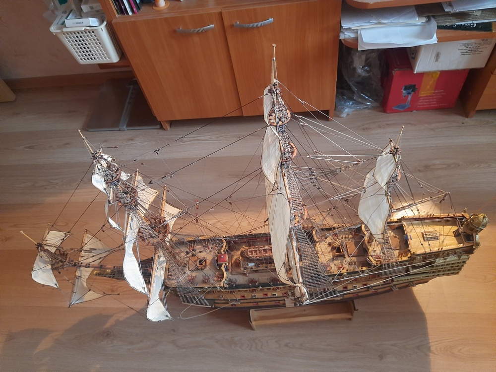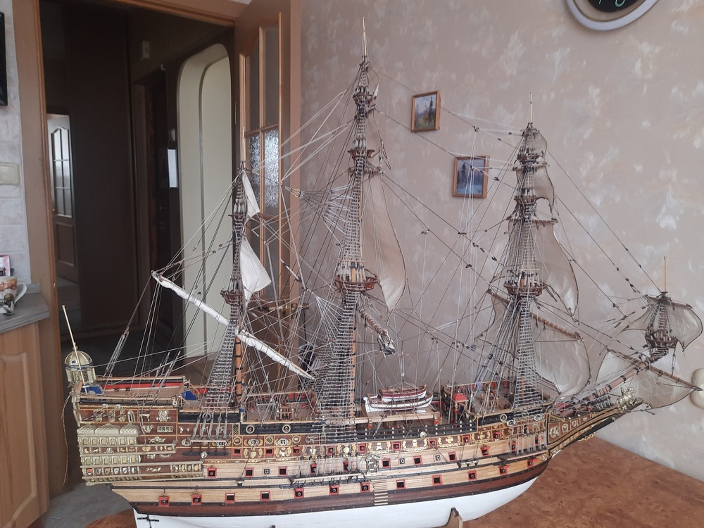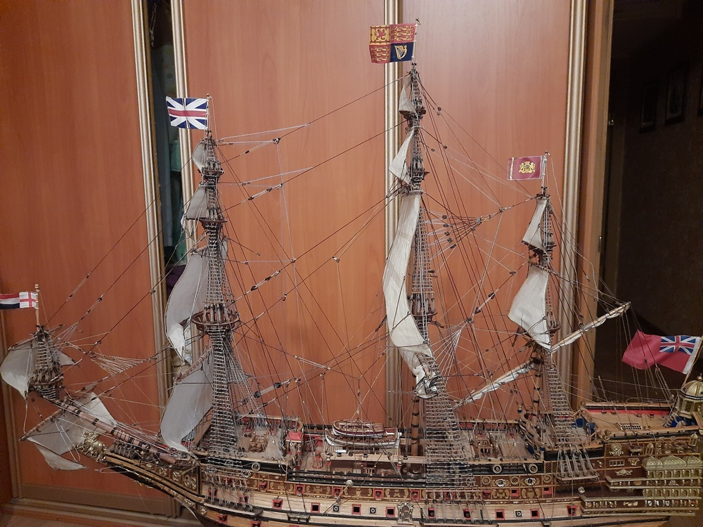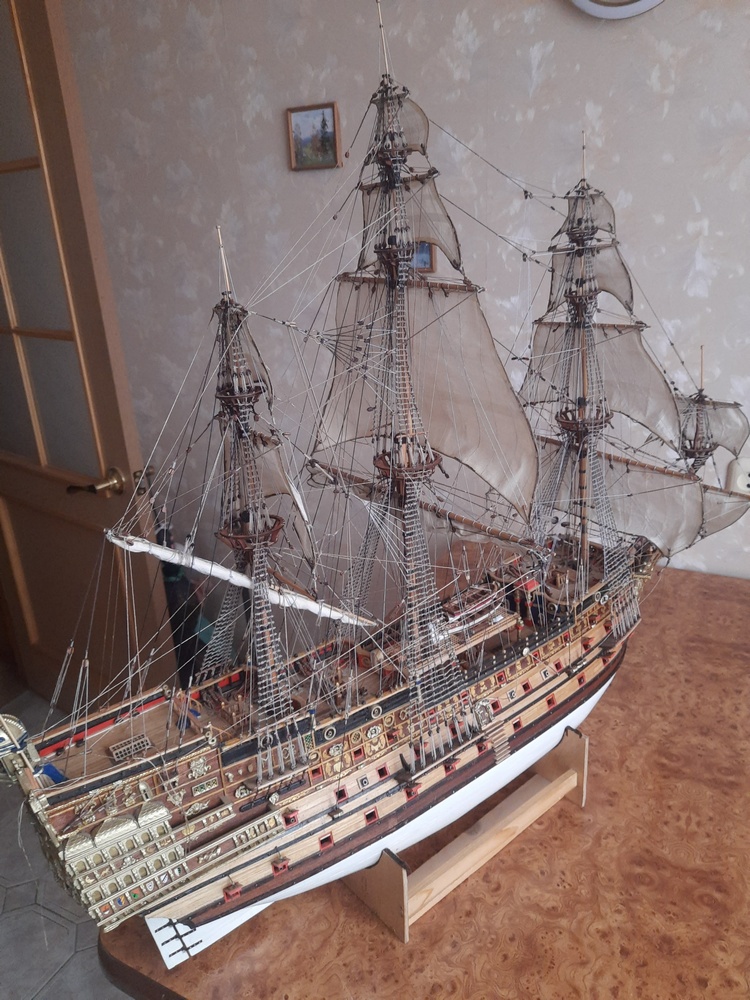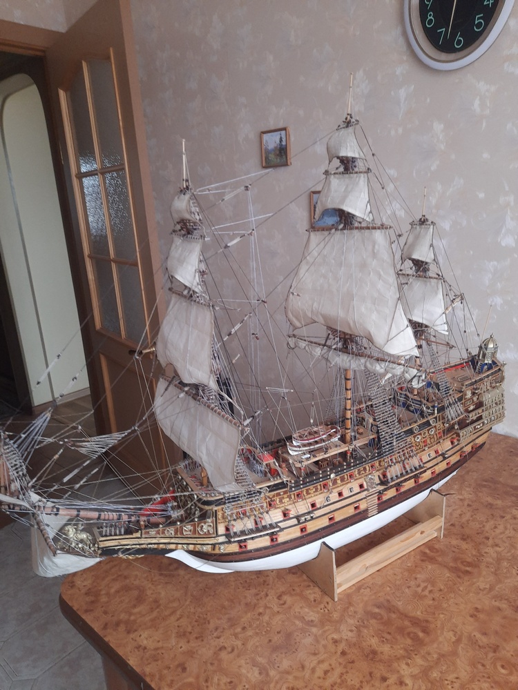 Здравствуйте уважаемые работники верфи! Что то совсем тишина на форуме.Решил поделиться своими "достижениями" Заканчиваю самый трудный и тяжёлый для меня этап;- установка парусов и проводка такелажа. Хоть работы ещё не мало, но визуально внешний вид модели можно оценить. Моя оценка низкая, между удовлетворительно и плохо. Как я не старался и не модернизировал корабль, чего хотел и желал не достиг. Как говорят, "из г-на конфетку не сделать". Процентов 15-20 мои недоработки и ошибки, остальные 80 ляпы и косяки от ДеА. Готов и открыт к конструктивной критике.Работа продолжается.
