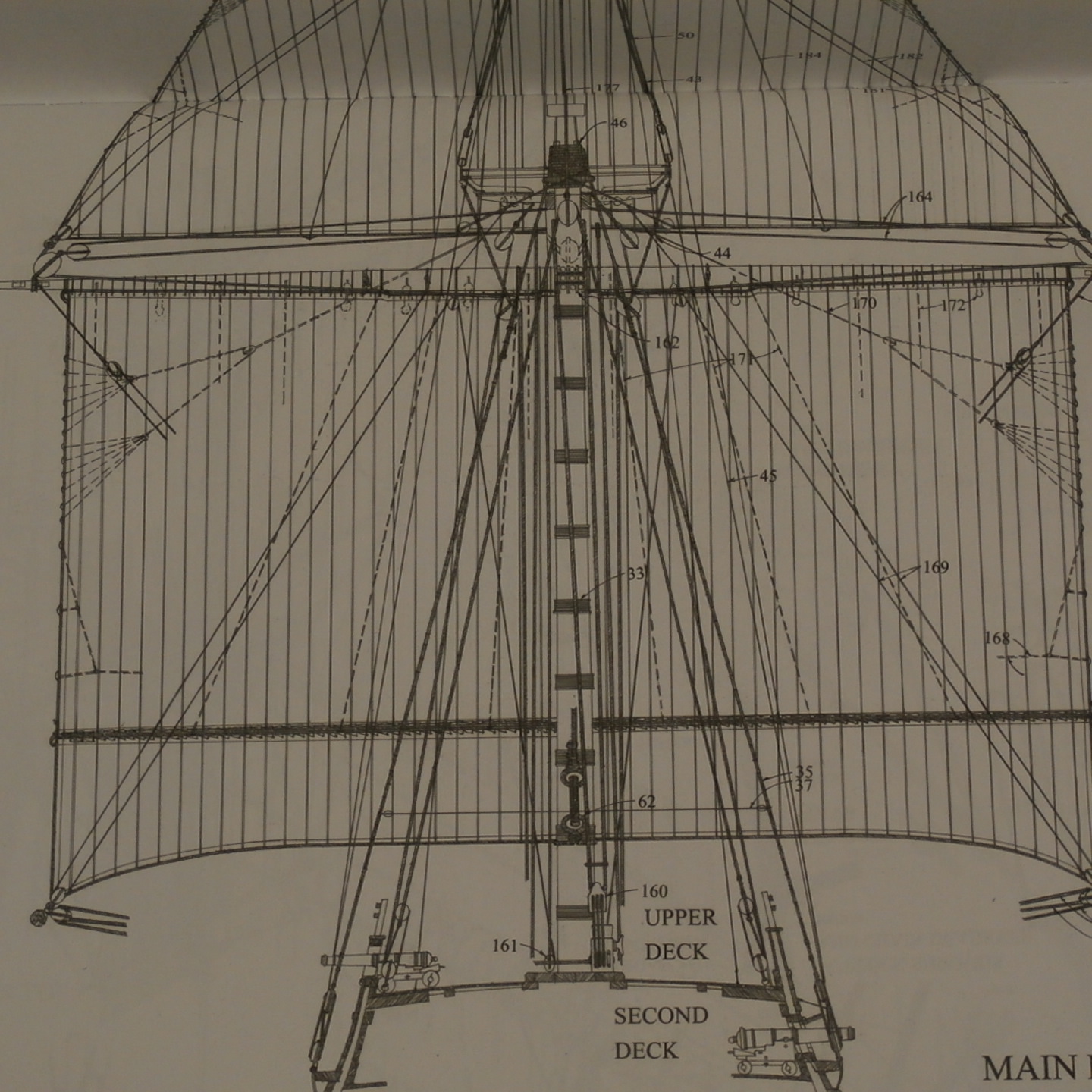 Добрый вечер! Судя по последней фотографии, позиция 170-это нок-гордени, поз.171 явно бык-гордени. Наверное поз. 172 тоже относится к бык-горденям, а небольшие детали, в виде петель возможно направляющие для тросов горденей, принайтованные к рее рымы или блоки. Перты, согласно литературе. стали появляться во второй половине 17-го века. Поскольку СоС, с переделками, просуществовал до конца века, вопрос;-какого года рисунки и чертежи? Сергей Николаевич, вопрос не к вам, он риторический, просто рассуждение.