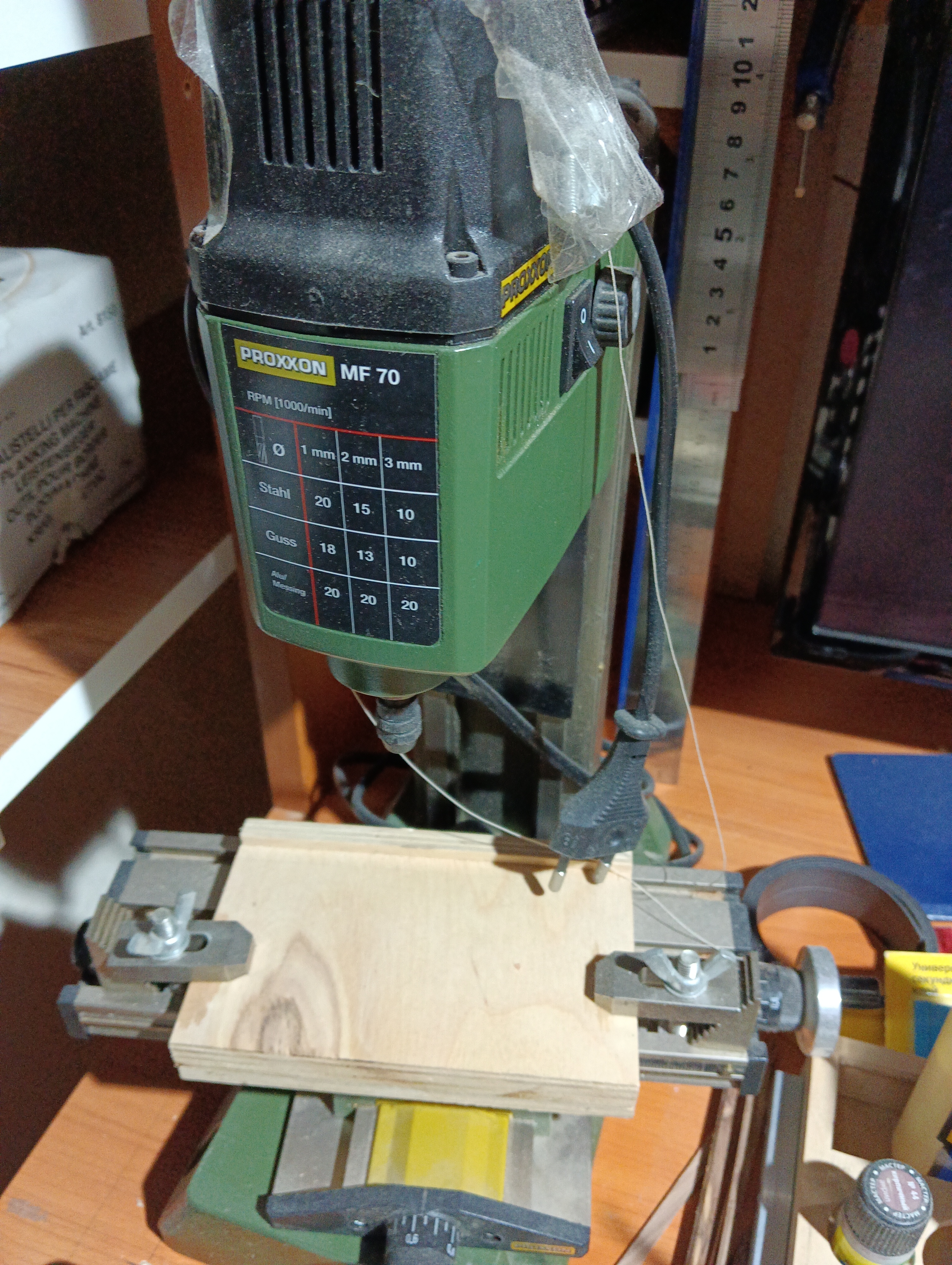 Идея стола из фанеры, просто идеальна. Можно попробовать сделать, что бы высвободить ступенчатые зажимы. Не взирая на отзывы, они хороши. Нужно думать о замене станка на MF 70. Конечно жаль напрасно потраченных денег, пока с этим повожусь.