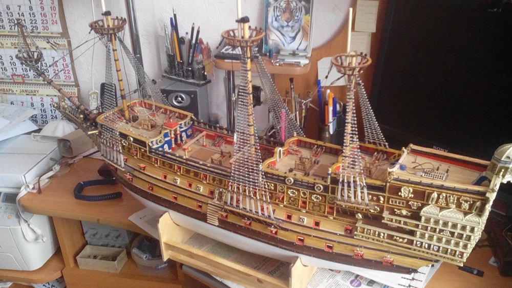 Спасибо за фотографию. Что здесь можно сказать - очень даже достойный корабль, вернее надо сказать - модель корабля! Чувствуется что не мало сил, времени и умения было вложено в эту достойную модель. Очень жаль что у вас нет своей веточки. Наш сайт и сам форум - это прежде всего сайт для начинающих, делающих первые шаги в таком замечательном искусстве как судомоделизм. Вы среди нас в своей массе первоклашек, по своему опыту явно ушли вперед. Впереди у вас рангоут и такелаж Повелителя. Было бы прекрасно если бы вы, работая над моделью по возможности подробней на фото показывали как справляетесь над этой сложной по общему мнению но интересной задачей. Наш корабль - сказочный, основанный только на описаниях современников самого корабля. Это плохо из за отсутствия чертежей и хорошо - потому-что открывает дорогу фантазии каждого отдельного автора модели.У нас есть вариант взятый из проекта ДеА. Нам очень интересен будет ваш вариант.