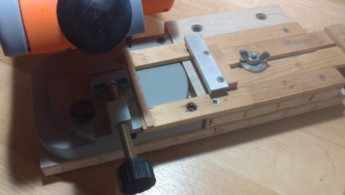 Здравствуйте, вот приспособа,которая, как я писал, делалась на скорую руку, при желании можно много чего доработать,но у меня пока нужды в этом нет ,пользуюсь ей редко ,в основном пилю трубки латунные. А по поводу Проксона,диск я думаю на него можно поставить любой из проксоновских, а на эту диски Проксон не подходят,посадочное отверствие 9,5мм, и диски на неё купить было нельзя раньше,как сейчас не знаю