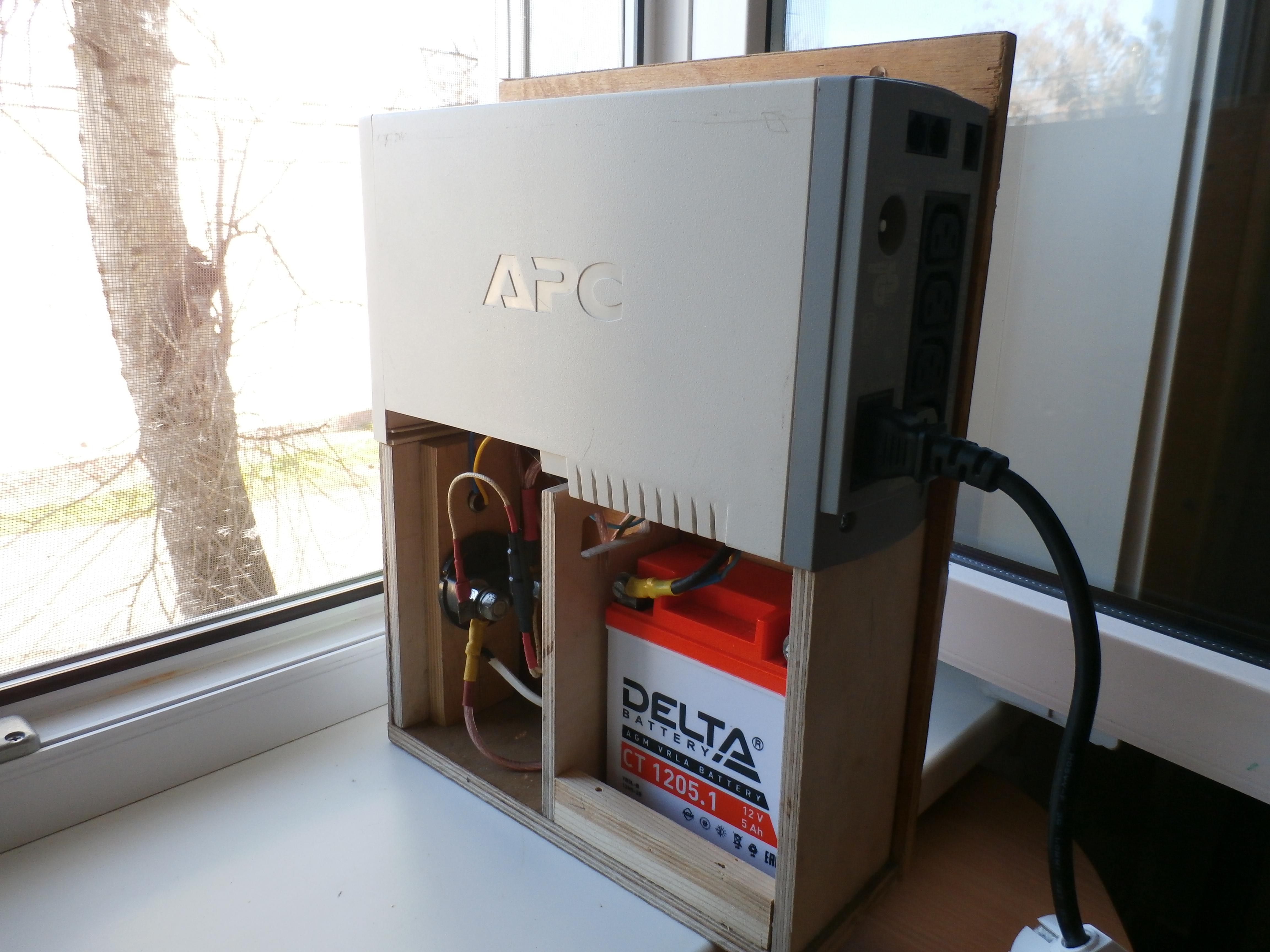 Аккумулятор установлен в питающем устройстве моего компьютера Изготовлен он в Индии APC Back - UPS RS 500. Вот и решил я отказаться от фирменной услуги мастерской, поставить в устройство аккумулятор от мотоцикла. Главная проблема в размерах батарейного отсека устройства. Пришлось делать полочку для нового аккумулятора. Попробовал - у меня получилось! Как получилось, показываю на фото!
