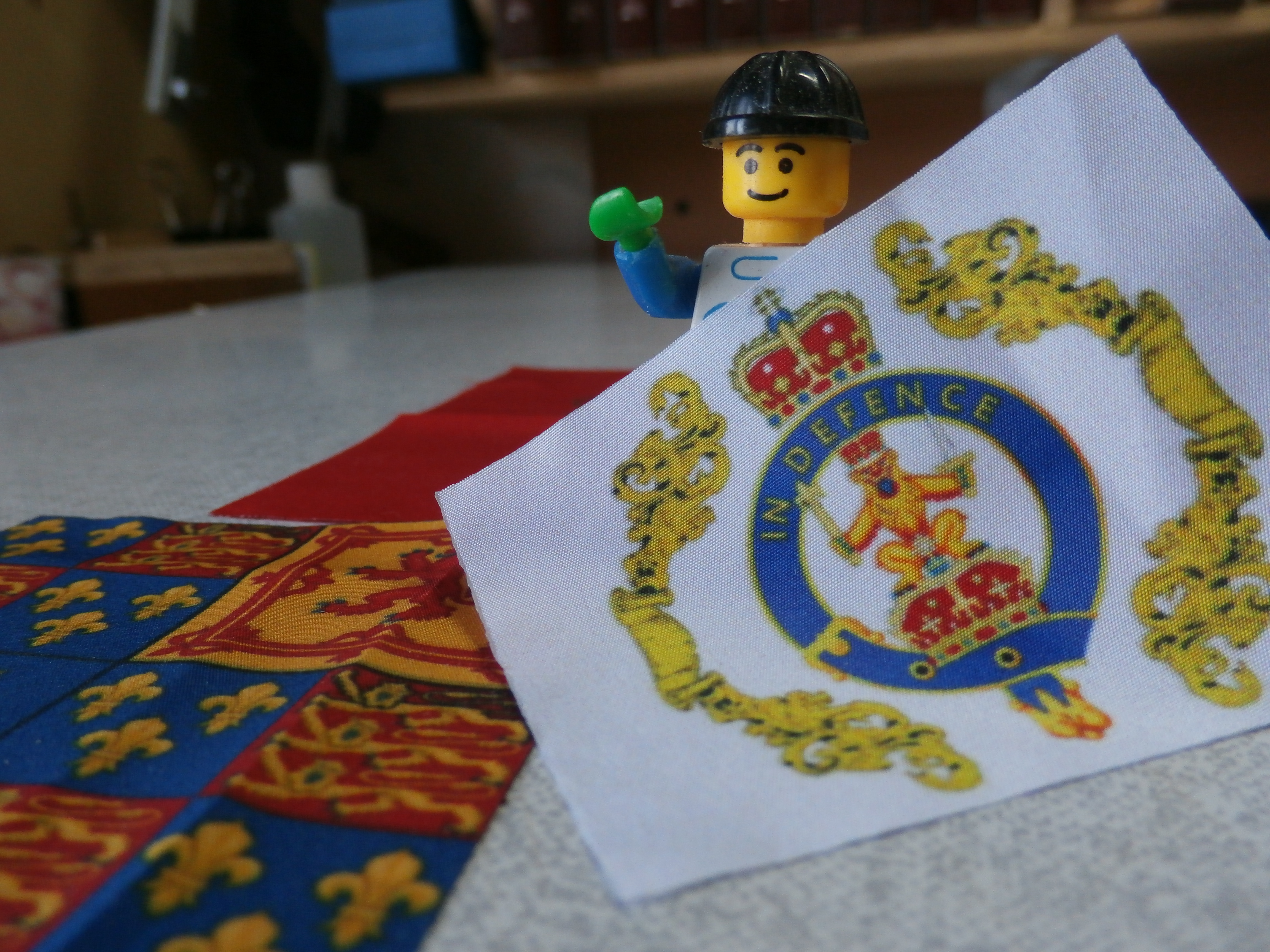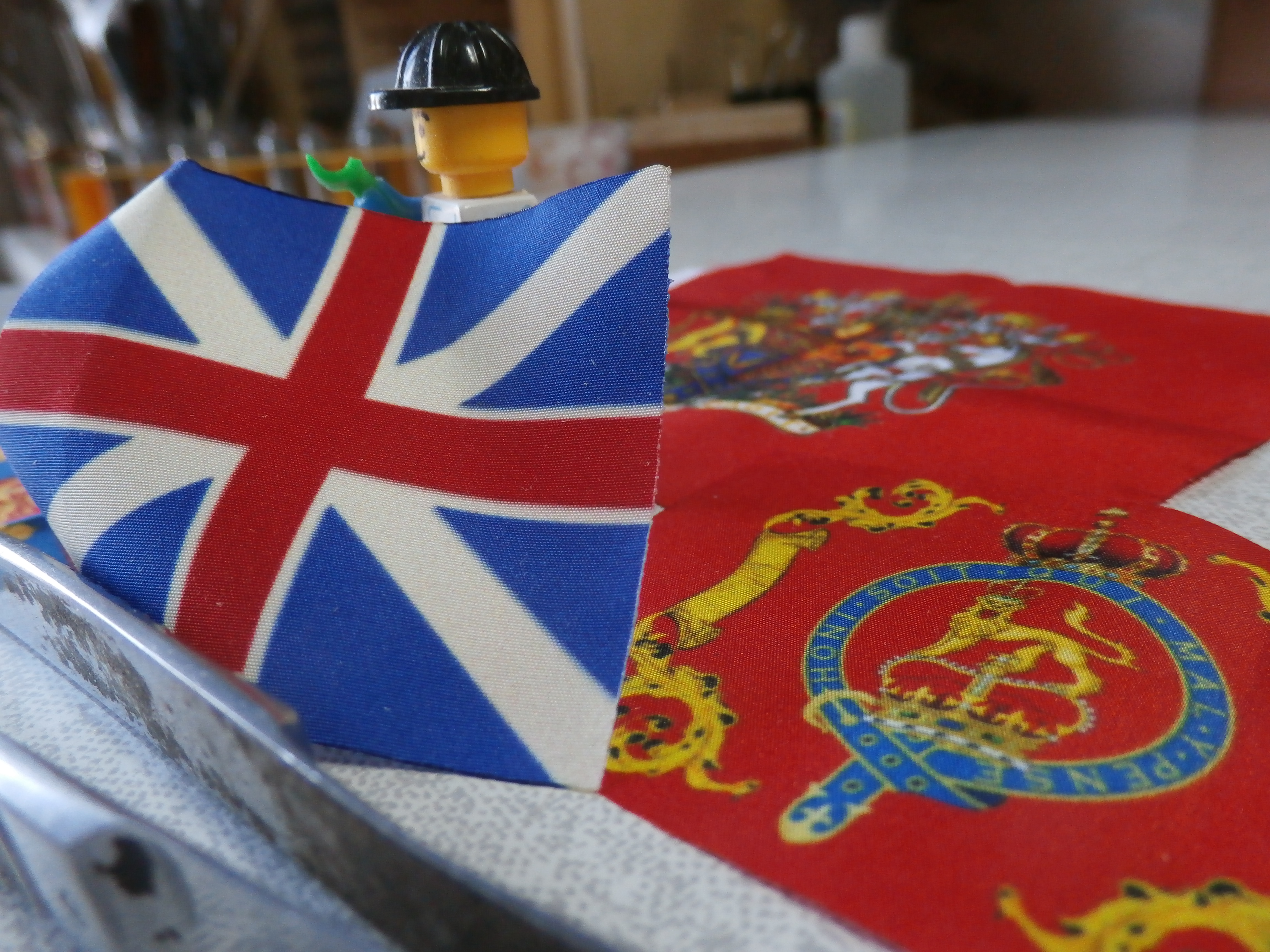 Берём пищевую плёнку(она лучше тонкого целлофана), мажем разбавленным ПВА, сгребаем одну сторону(верхний правый угол от флагштока) и придаём нужную форму, как высохнет, промазываем второй, или более раз, пока ткань не начнет хорошо держать форму, иногда достаточно и одного раза. Прошу обратить внимание, что плёнки по размеру должно быть сильно больше(около пяти раз). Фиксировать флаг и плёнку обязательно. Лучше флаг предварительно фиксировать уже с флагштоком, если это не возможно - использовать круглую палочку. Переворачиваем, отрываем от плёнки, повторяем процедуру. Если остались наплывы клея, не страшно, просто удалить смоченной в воде кистью - просушить.