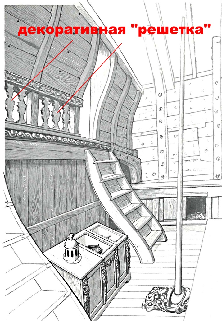Судя по вашим фотографиям , можно вас поздравить с обновкой. Поздравляю! Насчет технологий работы с токарным микростанком, здесь дело сложнее. Вполне понимаю вас, для успешной работы с новым станком нужно "набить" глаз и руку. На это нужно прежде всего много свободного времени и конечно терпения. У меня к моим трудностям добавляются еще старые мои глазки. При работе через увеличительное стекло добавляются в рабочей зоне станка еще и искажения. Из своего опыта должен сказать, большое значение имеет острота инструмента. Если еще не приобрели подходящих для работы резцы - можно использовать самодельные,старинные, лучше советские надфили. Материал для работы я использую бамбук - бамбуковые шпажки. Древесина, вернее трава очень жесткая. Экзотической какой либо древесины у меня нет. Могу вам посоветовать. Загляните на веточку Анатолия Осипова полистайте её страницы. Он вообще человек талантливый свои балясины практически точит на "коленке". Выкладывал там на фотках профиль шаблона изготовленного из вкладыша модельного ножа (скальпеля) что повышает и качество и стандартный размер токарных деталей. Еше я вам посылаю рисунок рулевого поста старинного корабля с колдер-штоком. Обратите внимание на "декоративную решётку" Она в какой то степени может заменить вам на модели точеные детали. Если не совсем собой, то в какой то степени местами... Удачи Вам и Здоровья!