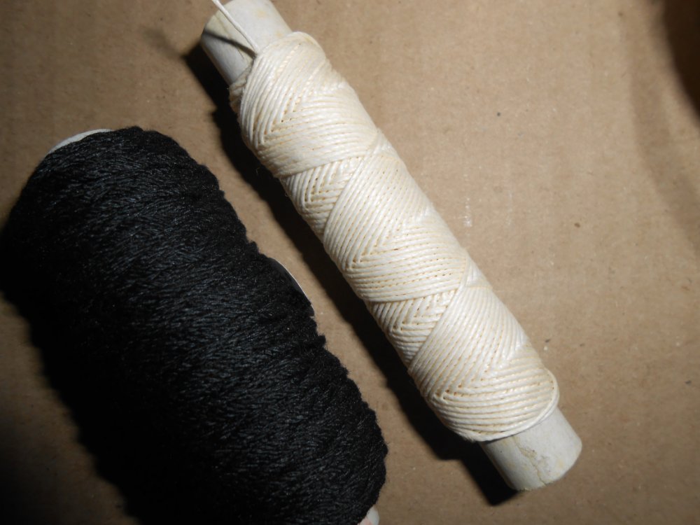 Здесь, не нужно делать из гютермана культа, это вполне доступные нитки, их можно купить в любом магазине с тканями и аксессуарами, самые дешёвые в оптовых(можно покупать по катушке), проблема только в том, что сложно подобрать цвет льна, "копра", чёрный, белый есть везде. Эти нити так же бывают разными по "волосатости". Есть куча альтернативных ниток, у китайцев есть, но вощить всё равно придётся. Мадейра тоже разная бывает.