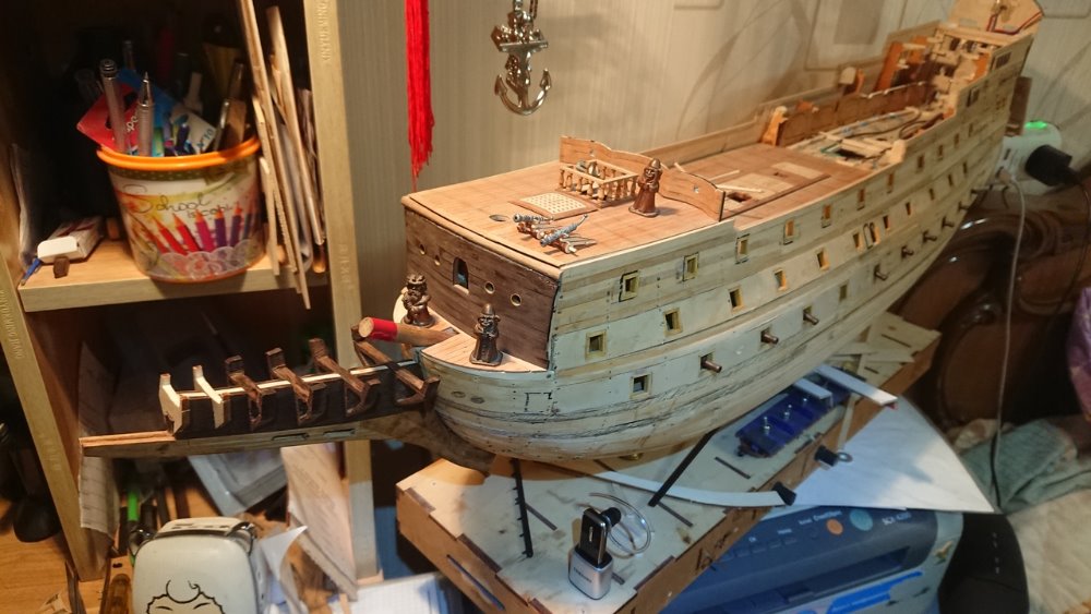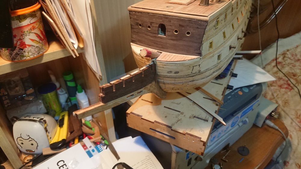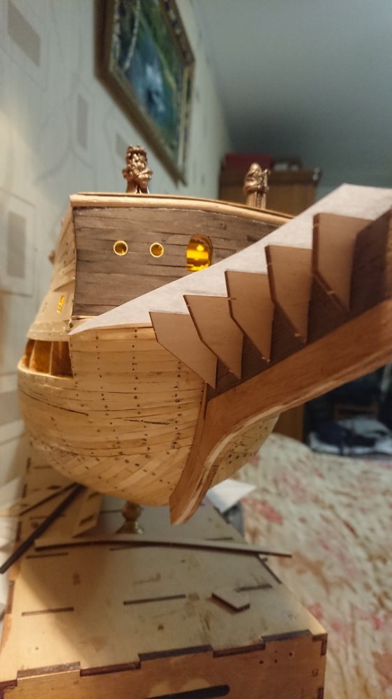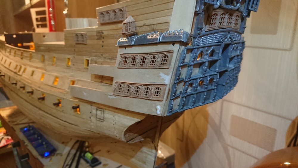 Так как расположения пушечных портов у меня идут не по инструкции, в этом плане у меня существенно изменится корма. В частности высота балконов у меня будет на 3мм выше. ВЫСОТА внешнего гакаборта у меня выше на 14мм. Пришлось докупать один из номеров с декором. Ну и так по мелочи.