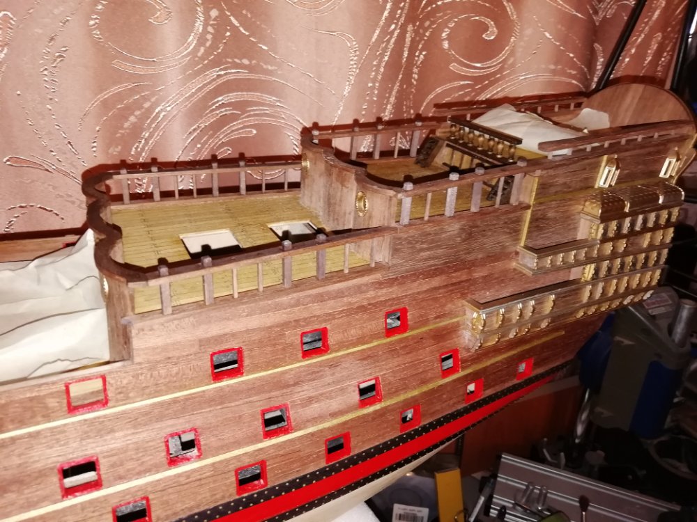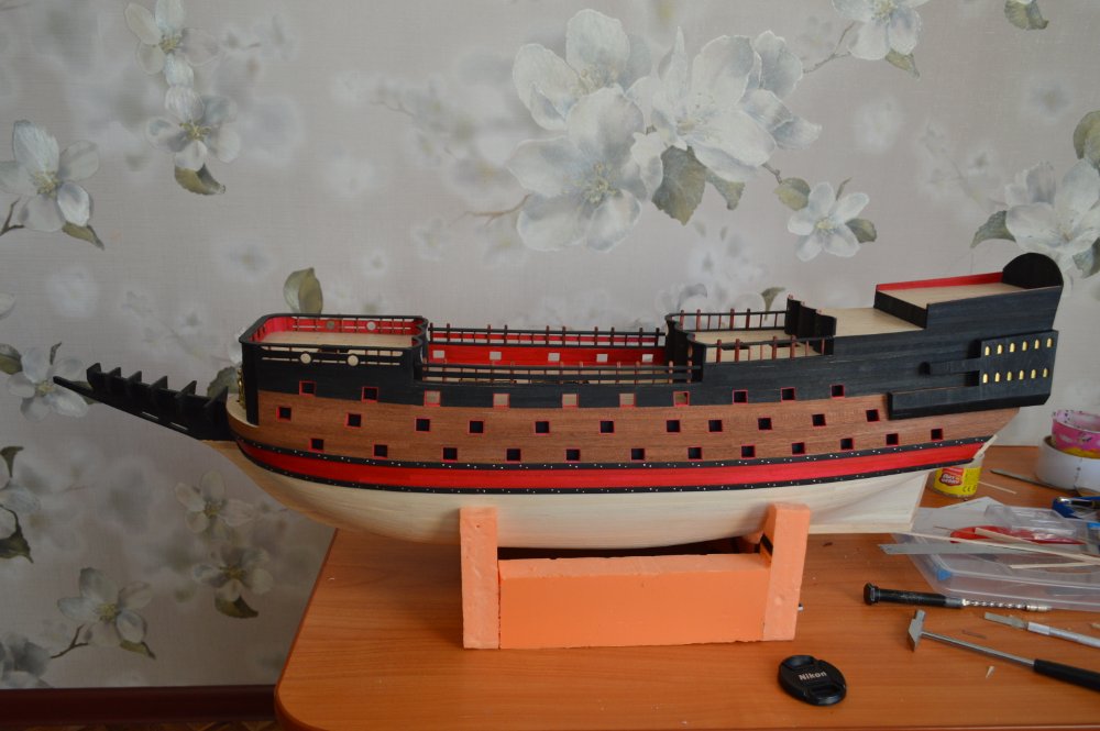 Ну а пока пушечные порты ещё дорезать надо в переборках... И ограждения доделать...
