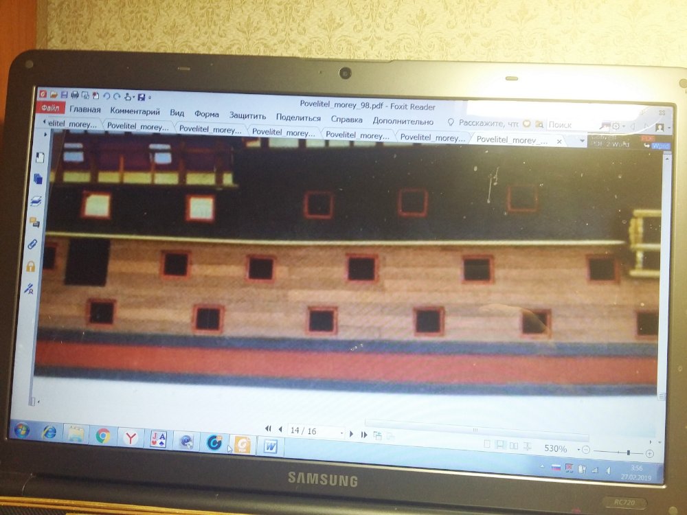 насчет портов не знаю. мне кажется нормально. но черным цветом подкрасил бы ниже портов примерно на рейку или сориентировался бы по 98 номеру. решать тебе и еще.. граница черного сориентирована относительно верха средних портовskodovod писал(а): ↑26 фев 2019, 23:10Да нормально смотрится (моё мнение), я строю по принципу мне нравится и ладно, но при этом многое черпаю у других, конечно хочется что бы своя модель была "лучше всех". А так конечно смотрю и учусь многому у других.Almaz1188 писал(а): ↑26 фев 2019, 23:02 Вот в чем у меня ещё думки: В общем расстояние между бархоутами 3 планки - 15 мм, должно быть 10 мм...