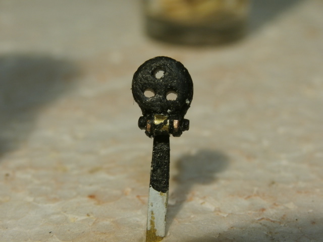 И так. Обработанный по краям в виде желобка тонким надфилем юферс пропитываем цианакрилатным (секундным) клеем. Даём время на просушку клея. За тем окрашиваем деталь китайской тушью ну а затем по верх покрываем слоем шеллака (политуры). Проверял я окраску юферса акриловой черной краской, но за счет грунтовки и краски покрытие получалось толстым аляповатым - мне не понравилось... Удачи всем и конечно Здоровья!