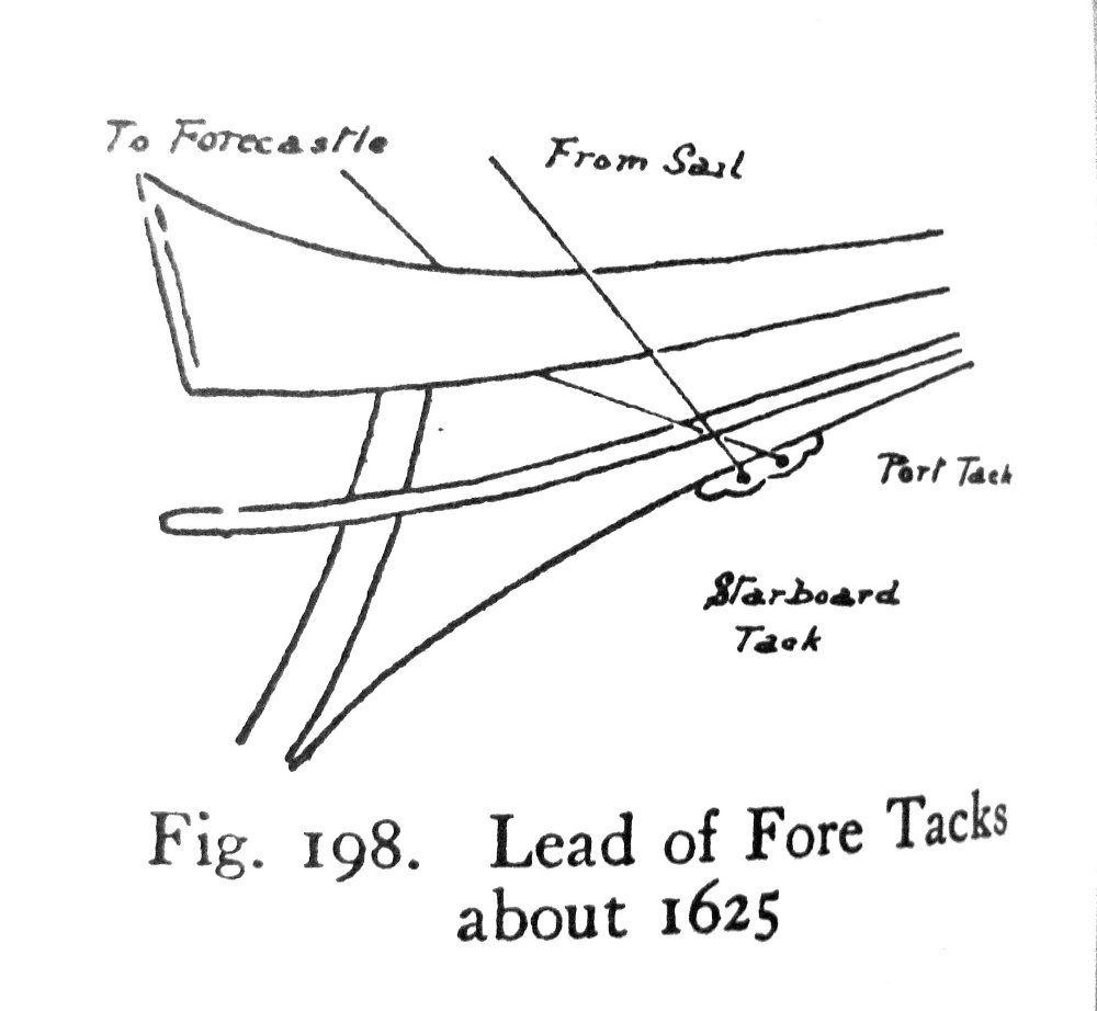 Нижнее фото - модель из интернета, где очень ясно видно проводку интересующей нас снасти. Ящик Пандоры открылся легко - вот почему англичане протаскивали снасть в очко не боясь перетереть её мокрую. Корабль под острым галсом ходил редко и не долго боясь на ходу потерять ветер. Большое спасибо Влад! Ваша ссылка очень полезная и интересная! Конечно Вы оказались правы! Удачи и конечно Здоровья!