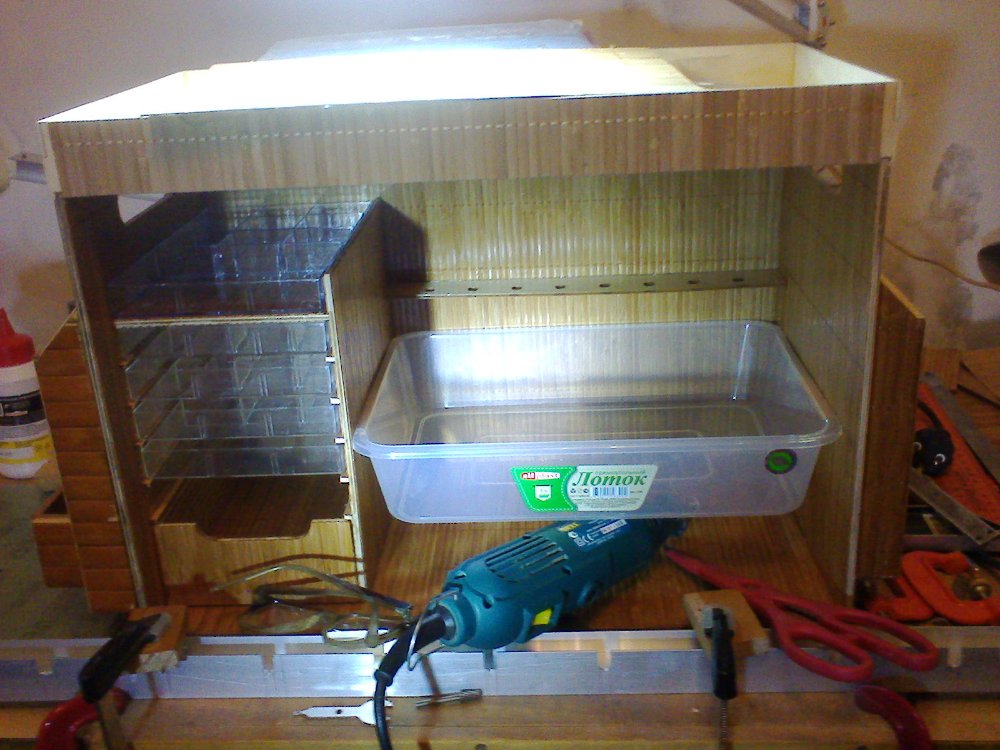 Да это подставка самодельная, просто все пока сложил внутрь, места не много, а сверху стапель самодельный, в работе пока не опробовал, как буду солей - рояль собирать - обязательно опробую.
