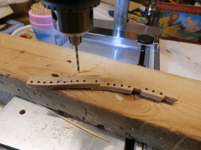 И так, постараюсь об"яснить своими словами: Руслень - узкая площадка устроенная на борту корабля и служащая прежде всего для крепления вант (снастей) мачт корабля.Для крепления русленей я применяю прежде всего металлические нагели. Так я считаю более надежно крепеж русленевой площадки. Под черновой и чистовой обшивкой корпуса модели я укрепил деревянные бруски. В самой же русленевой площадке тонким сверлом(1 мм)сверлю глубокое отверстие. Стараюсь сверлить аккуратно , так что бы не нароком сверло не вышло в сторону, а шло по середине фанерной детали. Что бы металлический нагель, а я его изготавливаю из канцелярской скрепки надежно зафиксировался в своём гнезде, по телу нагеля делаю мелкие насечки. Нужно учесть что глубокие насечки при изгибе металла могут не выдержать большой нагрузки и по насечке возможен разлом мет. детали. Насечку можно делать граненным надфилем или кусачками... Обезжирев нагель я его закрепляю в теле детали жидким секундным клеем.