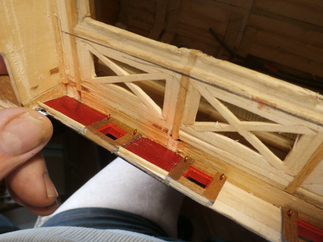 Решил начать с самого сложного , с третьего - кормового. Он кроме основной функции - направляющего будет еще служит и забортным трапом. На фото я показываю как я справился с поставленной задачей.