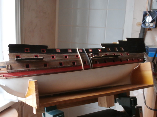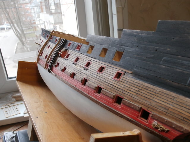 Все тот же правый борт. Начал изготовление крышек для арт.портов. Сто пушечный корабль - это сколько - же мастеру нужно изготовить крышек?!! Тоска!!!