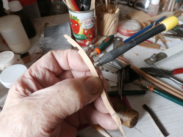 Ступеньки забортного трапа из 1,5 мм бамбуковых зубочисток слегка обточенных предварительно нажд. бумагой.