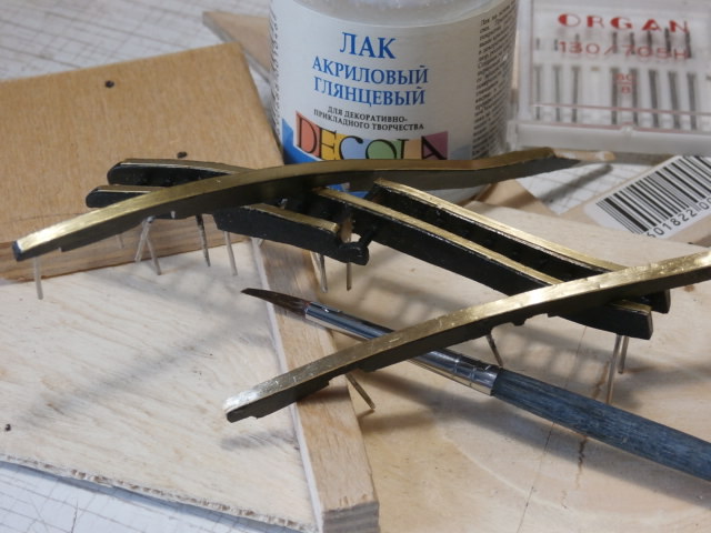 Так как корабль флагманский и "сказочный" предположим, что англичане не пожалели на фендерсы пустить на полозья дорогую латунь. Что бы полозья не тускнели, мы их покроем слоем акрилового