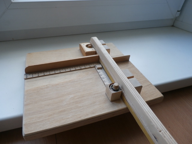 В конце строительства очень трудно себя будет заставить выполнять рутинную работу и по своёму опыту знаю очень часто интересная и даже редкая модель часто стоит годами у мастера без крышек. Ну ни как хозяин модели не может заставить себя доделать эти крышки! Поэтому решил для себя готовить крышки не спеша, по немногу В прочем это конечно и относится и к корабельной артиллерии... С крышками у меня особый случай. Убежден, что каждая модель должна иметь свою изюминку. Эта изюминка дается на откуп зрителям модели.Ведь у каждой новой модели обязательно должно быть что то своё, особенное... Я не даром связался, вернее связал своего Повелителя с федерсами. Кто не знает: федерсы это толстые, массивные брусья укрепленные на покатом борту корабля. Они защищают борт корабля от сколов во время под"ёма и спуска различных тяжестей: запасного рангоута, спасательных, рабочих и прогулочных шлюпок. В этом и будет моя изюминка! На грота-рей-талях на уровне "королевских" ворот, у моего Повелителя будет висеть шлюпка. Решение не ординарное, я надеюсь моим будущим зрителям это понравится!Для под"ёма шлюпки нужно будет закрыть крышки у встречных портов, что приведет в какой то мере экономии в артиллерии, времени обустройства этих пушек. Для работы с крышками я изготовил приспособление - устройство (обточки под прямым углом мелких деталей) Моё устройство взято из журнала, но я модернизировал его добавив подшипники качения, установленные на направляющих рабочего инструмента - ровного бруска с наклеенной на нем нажд. бумагой двухстороннем скоче.