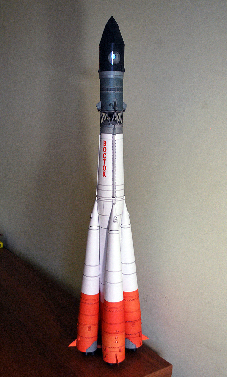 В апреле к дню космонавтики потребовали в школе сделать-принести ракету. Конечно склеить из рулона от туалетной бумаги - это вот не наше всё, нам надо ПРОЕКТ. Пару вечеров были потрачены на сооружение "Союза", но результат не особо порадовал, хоть и для школы сгодился. Чтоб вспомнить, как клеить модели из бумаги, качнул выкройки посерьезней, а бумагу взял поплотнее. Гагаринский "Восток" с "Союзом" к сроку сделать не успел, но тут уж задело за живое. С космосом вся жизнь связана, тоже корабли. Пока не доделал до конца не успокоился.