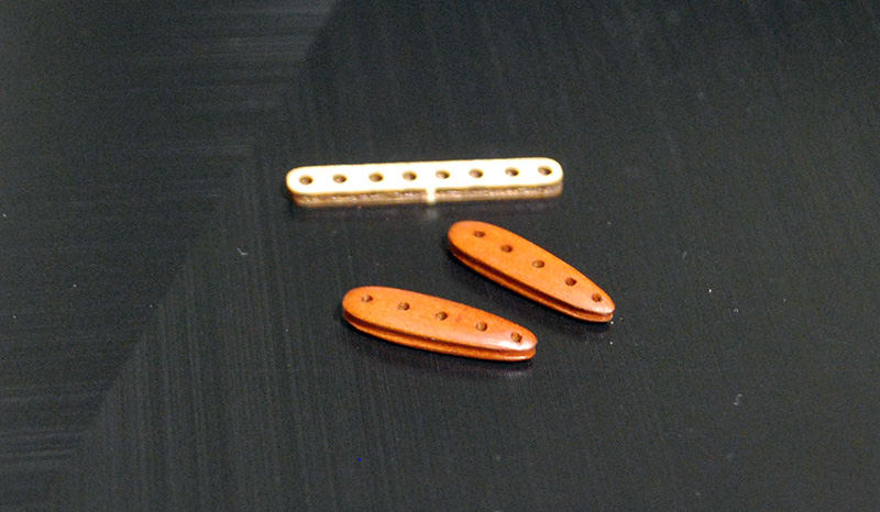 Для начала выточил из груши два анапуть-блока веретенообразной формы для фок и грот-штага. Кажется у Андерсона было указание, что на бизань штаг анапути не ставились.
