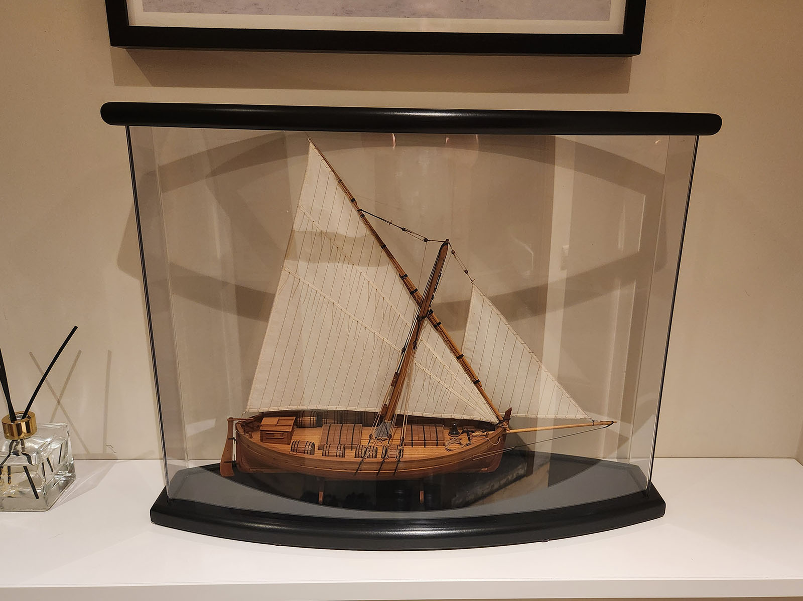 Витрина из мастерской Шамиля (г. Набережные Челны). Пересмотрел много вариантов изготовления, в том числе и всякие шкафы от Mr Doors и т.п. Классический "аквариум" с боковыми стойками показался тяжеловесным, клеёный из оргстекла получше. А этот вариант понравился своей легкостью, ажурно!