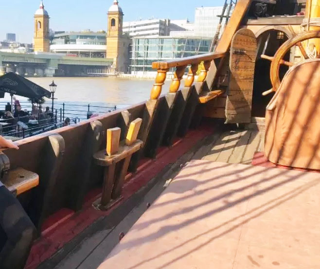 Галсы и шкоты оттягивают нижний, шкотовый угол паруса и являются довольно таки толстыми тросами диаметром сравнимым с вантами. По журналу они привязываются к рыму в палубе и укладываются на кофель-нагели, что для толстого троса делать неудобно, да и не правильно. Здесь нужно что-то более основательное. Концы галсов и шкотов укладывались в то далекое время на утки с лапками. Как должны выглядеть эти элементы можно найти в книге Андерсона. Интересно, что для своей реконструкции МакКейн в книге изобразил утки с лапками голландского типа, нам же нужны британские. Форму и размер такой утки британского типа можно увидеть на фотографии современной реплики галеона "Золотая лань", пришвартованного на Темзе в Лондоне. Мог ли я, осматривая этот галеон в теперь уже далеком 2006 г., представить, что буду делать модель корабля в 2023-ем?