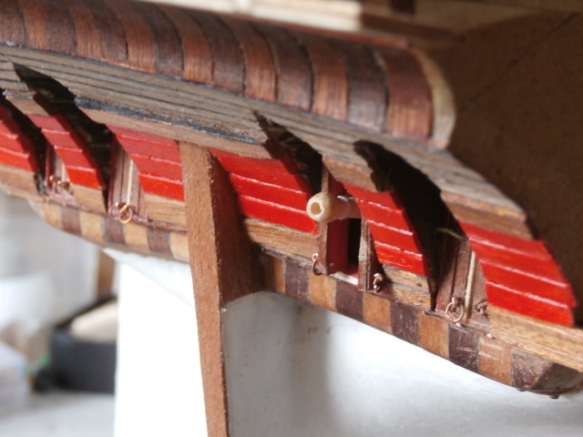 Конечно эта тема уже поднималась на форуме, меня тогда немного подзакидали шапками, но всё же... . В реальности порты прорезались между шпангоутами(вертикальные стенки), а вот нижняя планка порта по идее должна повторять изгиб палубы, вряд ли она была ровной по горизонтали. Я уже приводил фото реплики галеона "Нептун" Но, да это, моё личное мнение.