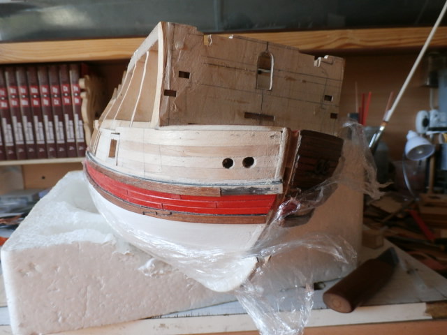 Закончив гон-дек левого борта, я перешел к нижнему кормовому окончанию , тому месту который чаще всего называют кормовым подзором корабля. Что нам предлагает по оформлению этого места - проект ДеА? Очень скромно, по-спартански, не заметно - четыре практически не видных ретирадных арт. портов, замаскированных на фоне темного подзора модели, я же хочу нарядный, "сказочный корабль"! Меня спросят - А как же историческая действительность? Честно говоря История Великой Британии меня мало волнует, Мой корабль прежде всего памятник всего Человечества, его достижений в борьбе со стихией - морями и океаном! Достижения Питера Петта! Его инженерной мысли, памятник тем безвестным столярам и плотникам, которые построили этот корабль! Слава им!