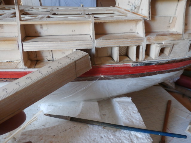Я сначала не придал значения вашему способу черновой обшивки судна. Привык делать по классике. Теперь рассматривая ваши фото, понимаю, что в этом, что то есть. С точным прорезанием портов всегда были проблемы, то там вильнуло, то здесь убежало, делаешь кучу шаблонов, что то переделываешь, а подгонка черновой под под готовый "колодец" порта мне очень понравилась, если ДЭА не соблазнит чем нибудь типа "Солей Роял", то следующей моделью будет как раз "Нептун" думаю опробовать вашу технологию.
