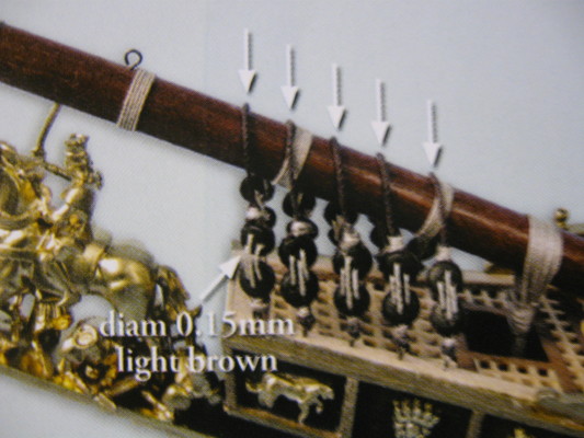 Глубоко убежден, что настоящим украшением модели старинного корабля является обустройство юферсов на мачтах вант и выбленок мачт корабля. Ровные ряды которых украшают модель корабля Увы, наверное создатели модели поспешили, или просто не обратили на это внимание и в итоге получили вот такой вариант: (См. фото)