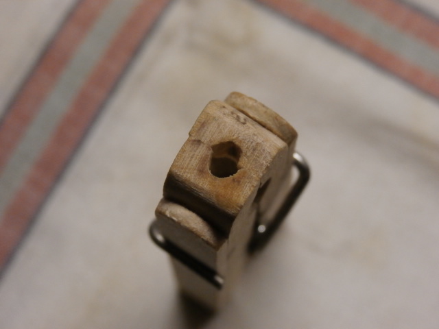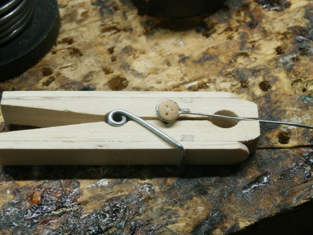 Для работы с юферсами я изготовил такое приспособление: Обычная березовая бельевая прищепка. Для того что бы прибавить жесткости пружине наклеил на ручки 2 мм планки (палочки от мороженого). Что бы при работе губки прищепки не срабатывали в бок от жесткости пружины, внутрь прищепки штырьком вклеил зубочистку. В губках прищепки бормашинкой организовал гнездо куда буду вставлять при пайке юферс.Немного укоротил сами губки у прищепки и для удобства работы их закруглил.