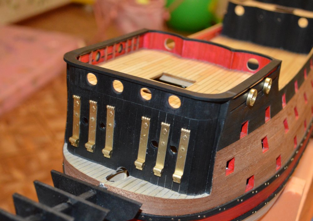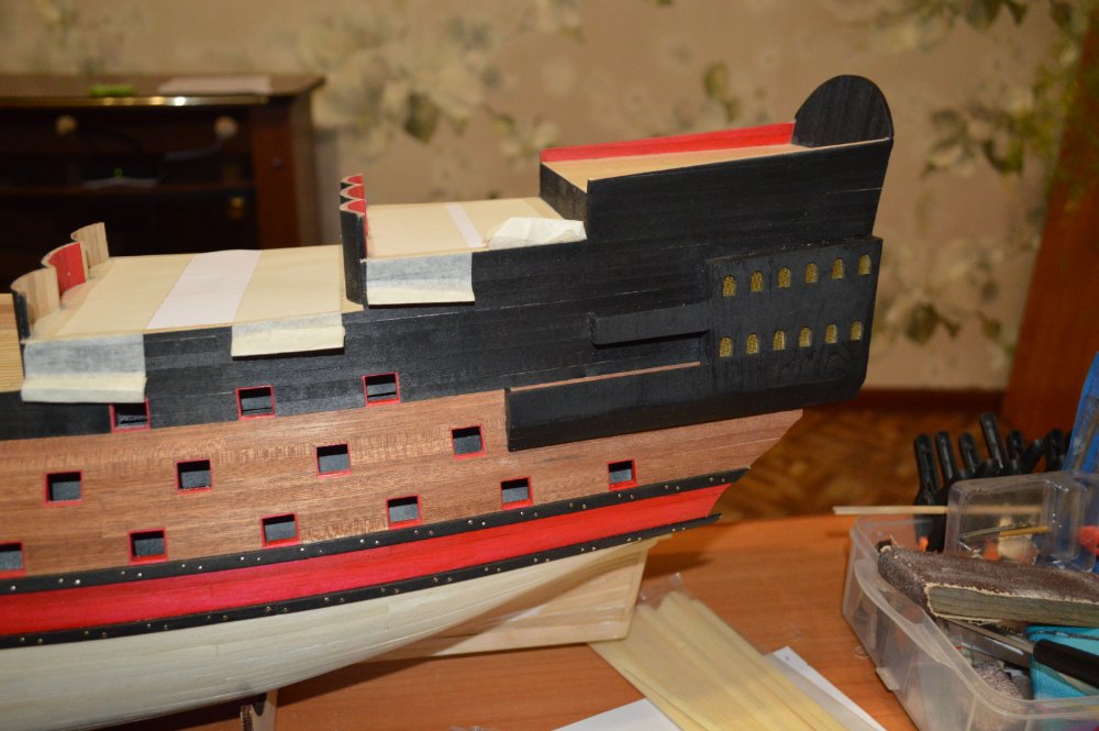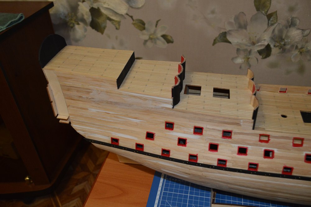 На главной палубе буду ещё обшивать рейками 1х5 мм... (займусь этим в скором времени), борт получится не тоненький как сейчас...