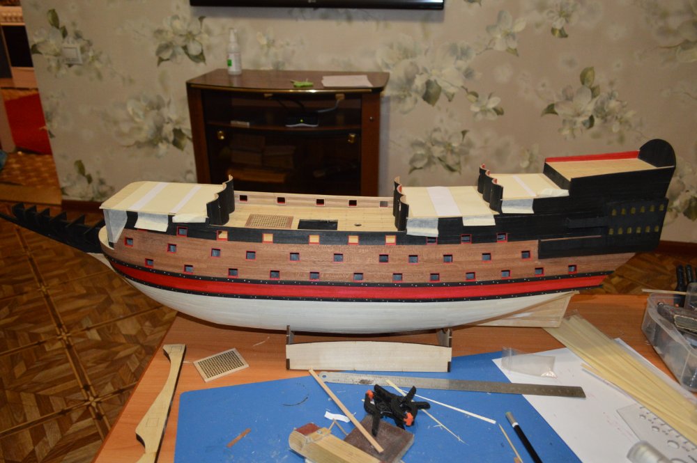 Вот что имеем на сегодня: Осталось немного обшить низ корпуса чистовой обшивки... Прорезать отверстия в палубных переборках...