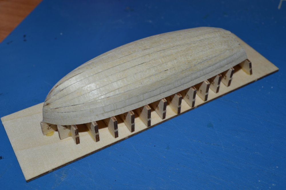 За пару дней сделал обшивку борта, осталось обшить днище модели...