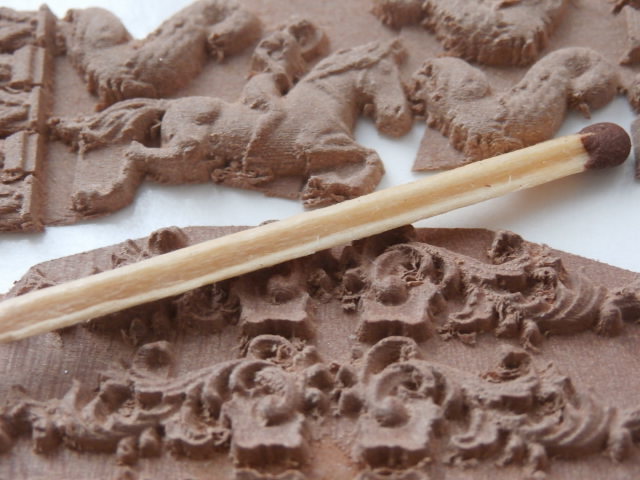 Я понимаю - тут новые технологии. Меня ставит в тупик, то что фреза не просто срезала слой древесины за слоем, а в миниатюрном декоре по краям фигурок фреза, как бы взбивала в пену, будь то это не древесина а пластическая масса! Хотя сама плашка явно - груша!