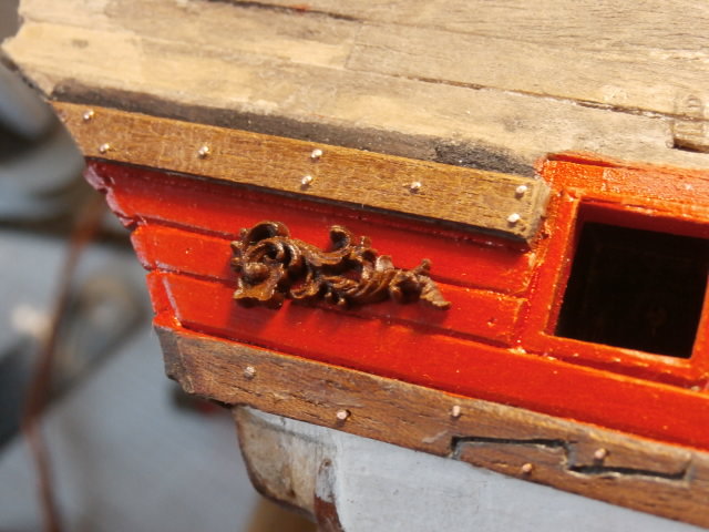 Вот наверное так я расположу фигурку декора на кормовом окончании борта модели. В итоге это получается как то так...