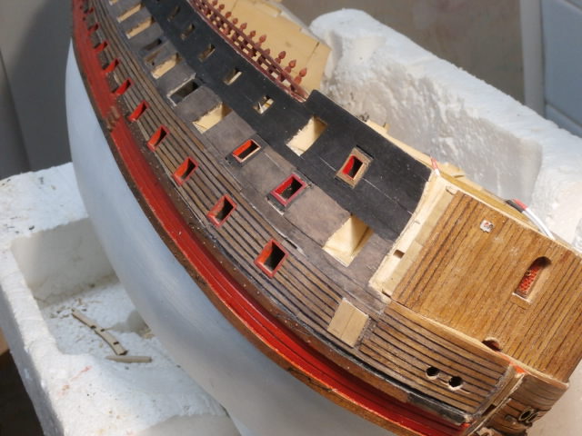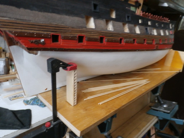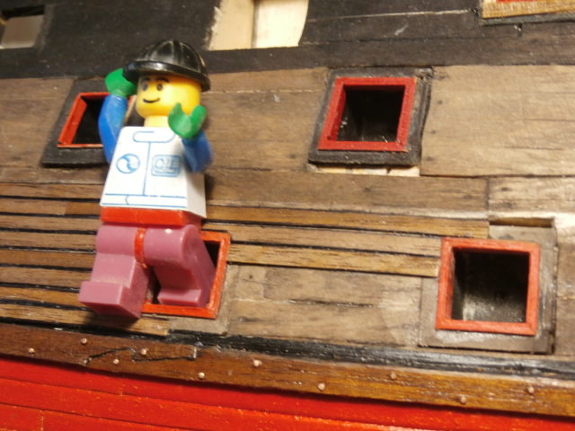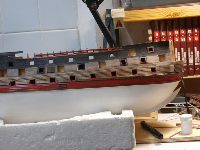 вант -путенсы,якоря , якорные троса. Всё это дает возможность первый порт при строительстве модели установить закрытым. Что дает возможность с"экономить судомоделисту у модели на паре фальшпушек.