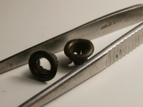 Люверсы Работая в своё время, я как и все слесаря получал рабочие ботинки. В последнее время ноги у меня стали капризными к обуви. О носке ботинок уже не было речи. Перед тем как отнести ботинки на свалку я обратил внимание на люверсы - металлическая окантовка отверстий для шнурков ботинок. Решил люверсы оставить на память. Связка долго кувыркалась у меня в мелочевке - но вот и пришло время и для люверсов...