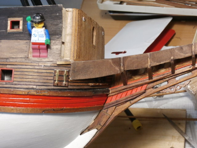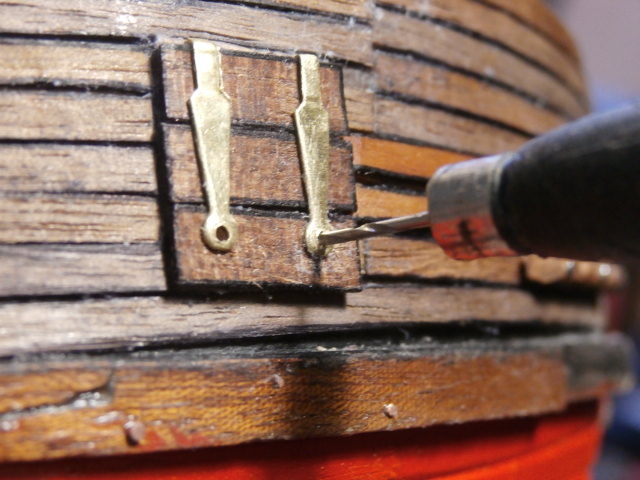 Думал - чернить - не чернить! Корабль то сказочный обилие позолоты, всё же решил петли не чернить оставить их под лаком. На борту добавится золота...