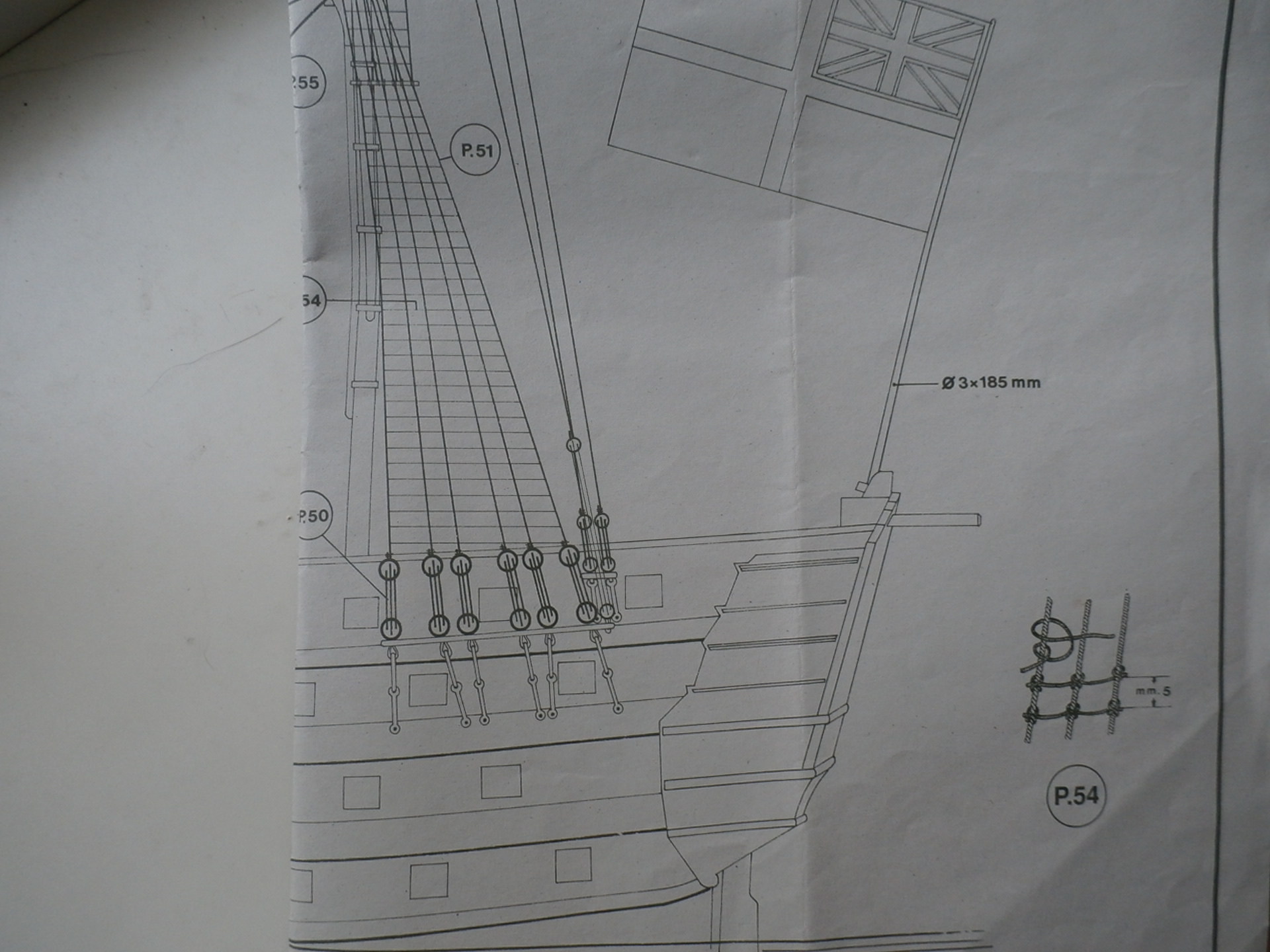 обустройство Мантыль-талей на руслене фок мачты брига "Меркурий" Чертеж 8 Из серии Victory models Amati КИТ Италия.