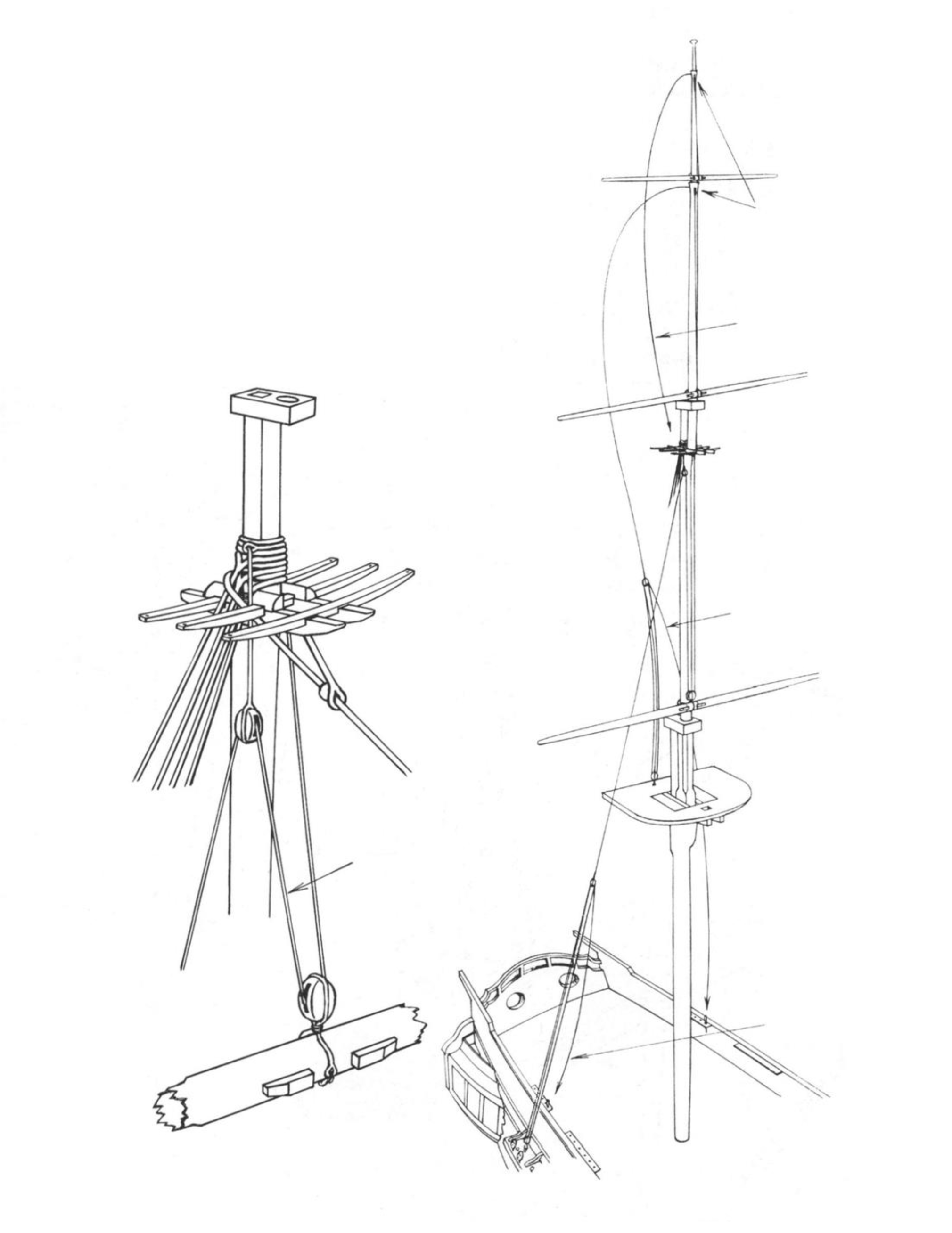 Если вы помните наш давнишний разговор по поводу блок-талей показанных на постере и установленных по два на русленях, вы были правы,это драйрепы реев стеньги и брам-стеньги. Вот картинка из Петерсона.