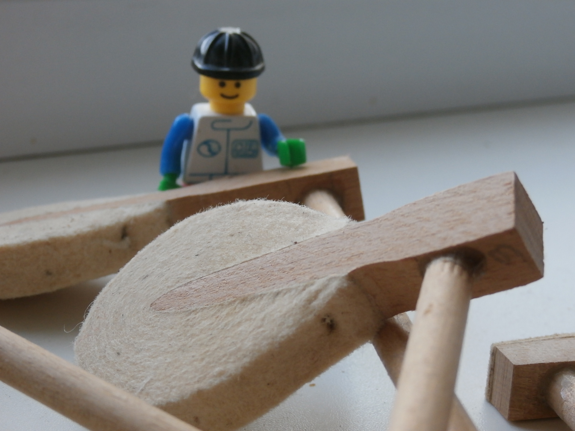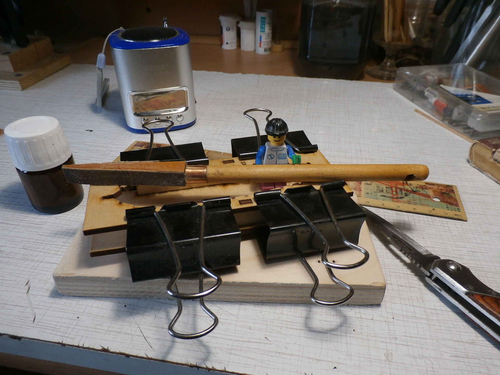 Продолжаю свой рассказ о строительстве модели парусника. Многие наверное были разочарованы, ожидая увидеть сейчас большие преображения моего корабля. Увы, летний сезон на даче заставил на строительстве поставить точку, вернее многоточие. И даже сейчас в начале октября у нас в Подмосковье стоит прекрасная, солнечная погода, а значит , дачники знают, всегда находится множество дел. У меня еще не убрана картошка. Время бежит и браться за Повелителя надо. Но перед тем, как браться за линкор нужно перебрать и отрегулировать и порой отремонтировать свой ручной инструмент и не только. Я по своему опыту знаю и уверен в этом, что от качественного инструмента во многом, если не в абсолютном большинстве зависит результат работы мастера, как профессионала, так и начинающего. Сегодня я буду вести речь о ручных самодельных обточках которые в среде судомоделистах называются "сухариками". Инструмент простенький , но которым приходится пользоваться очень часто и от качества "сухарика" зависит в огромной степени качество всей модели. Я пишу не только о тех "сухариках"которыми нам одарила ДеА. Но о разных по размерам и виду и размеру"сухариках". В своё время , нечаянно для себя я разжился деталями механизма пианино. Внутренние детали пианино изготовлены из очень хорошо просушенного бука. Что то вытачивать, строгать и клеить из такого бука, поверьте , сплошное удовольствие. Вот я и решил изготовить промежуточный вариант, между мелкими "сухариками" и большими колодками ДеА сухарики средние. Мелкие сухарики у меня от нагрузки часто ломались, да и по площади рабочей поверхности часто были маловаты. У новых сухариков я решил сделать с"емную ручку, сами же сухарики изготовить отдельно. Это для меня , как мне кажется оптимально, тем паче такую деталь очень просто выточить из пианиных молоточков. Я решил изготовить от сухарика для полировки фетром пастой ГОИ, мелкозернистой "бархатной" бумаги-абразива и до абразива с номером 80. Я понимаю, владельцев у себя в запасах пианинных молоточков мало. Но цель моя в другом, нужно по чаще оглядываться во круг себя, сбрасывать с себя инерцию мышления и радоваться обнаружив не чаянно для себя очередную "эврику"! Удачи вам и конечно Здоровья!