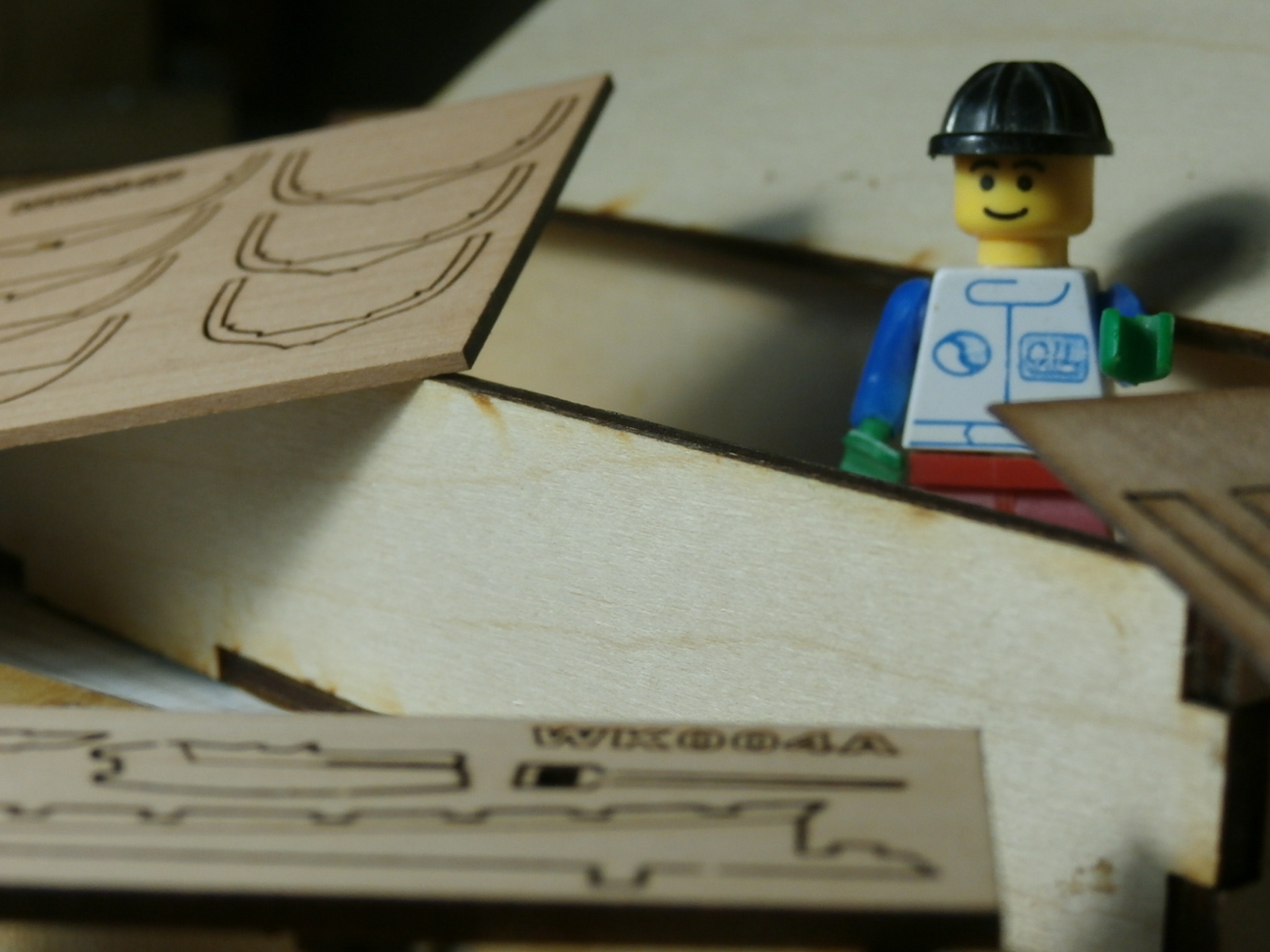 Работа интересная, детали очень мелкие, аккуратно вырезаны лазером. Хорошо просушены и довольно хрупкие. Чуть нажмешь и возможна поломка. В сложных местах монтажа не плохо и подстраховаться : предварительно деталь смазав ПВА подождать пока клей не закристаллизуется и только после подгонять надфилем по месту крепления и приклеивать на штатное место. Удачи всем и Здоровья!