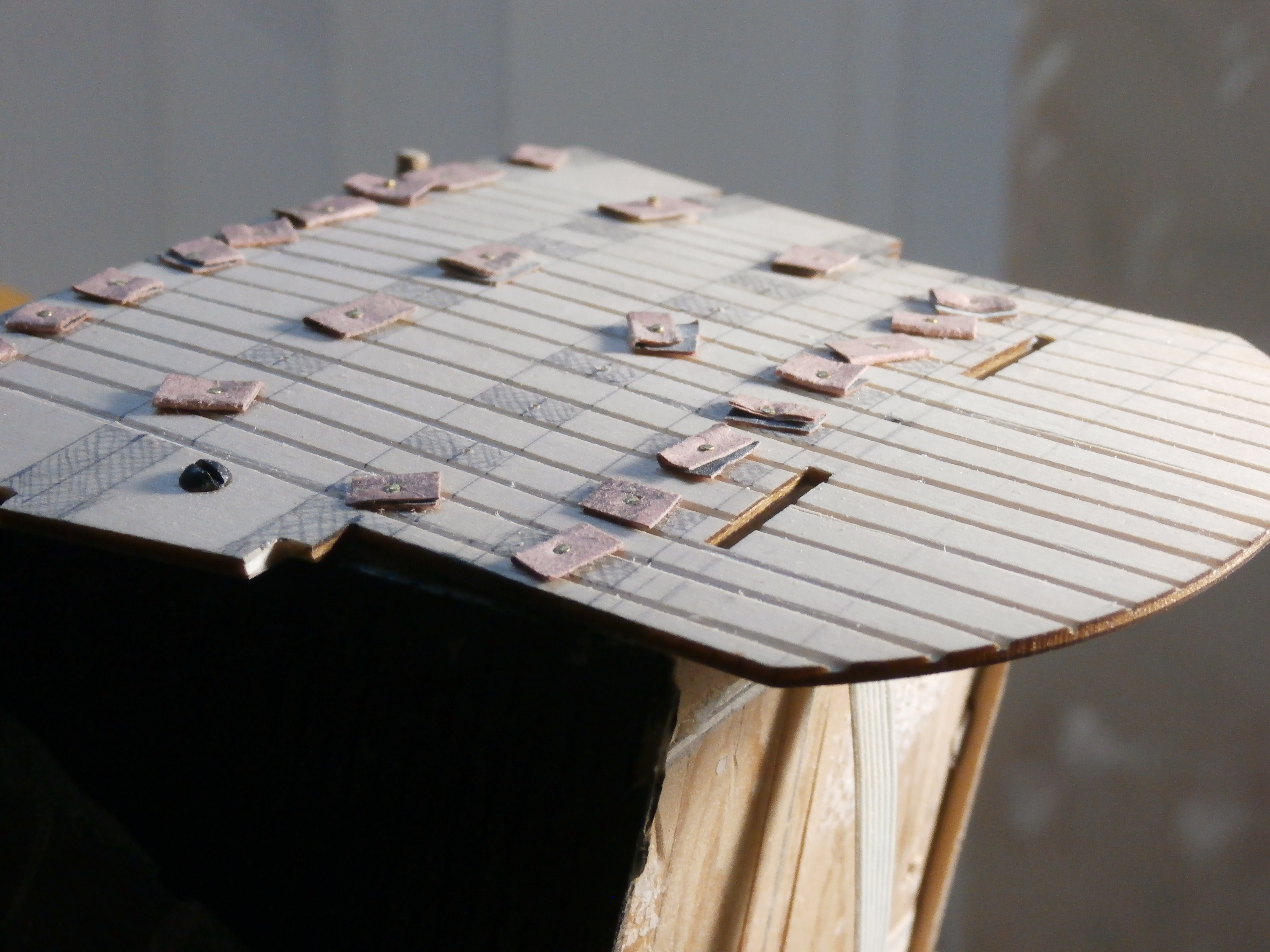 Силовые балки ( фальш.) на коих покоится кормовая надстройка Повелителя. Добавил в конструкцию кормовой надстройки только для того что б укоротить визуально кормовую надстройку линкора. Кто то из форумчан её метко назвал сундуком, бабушкиным сундуком... Согласен, кормовая часть надстройки (подзор) уж очень далеко выдается за ахтерштевень в нашем проекте. Хотя с другой стороны король и адмиралы любили жить в комфорте, не ограничивая себя в квадратных метрах своих апартаментов. Удачи всем и конечно Здоровья!