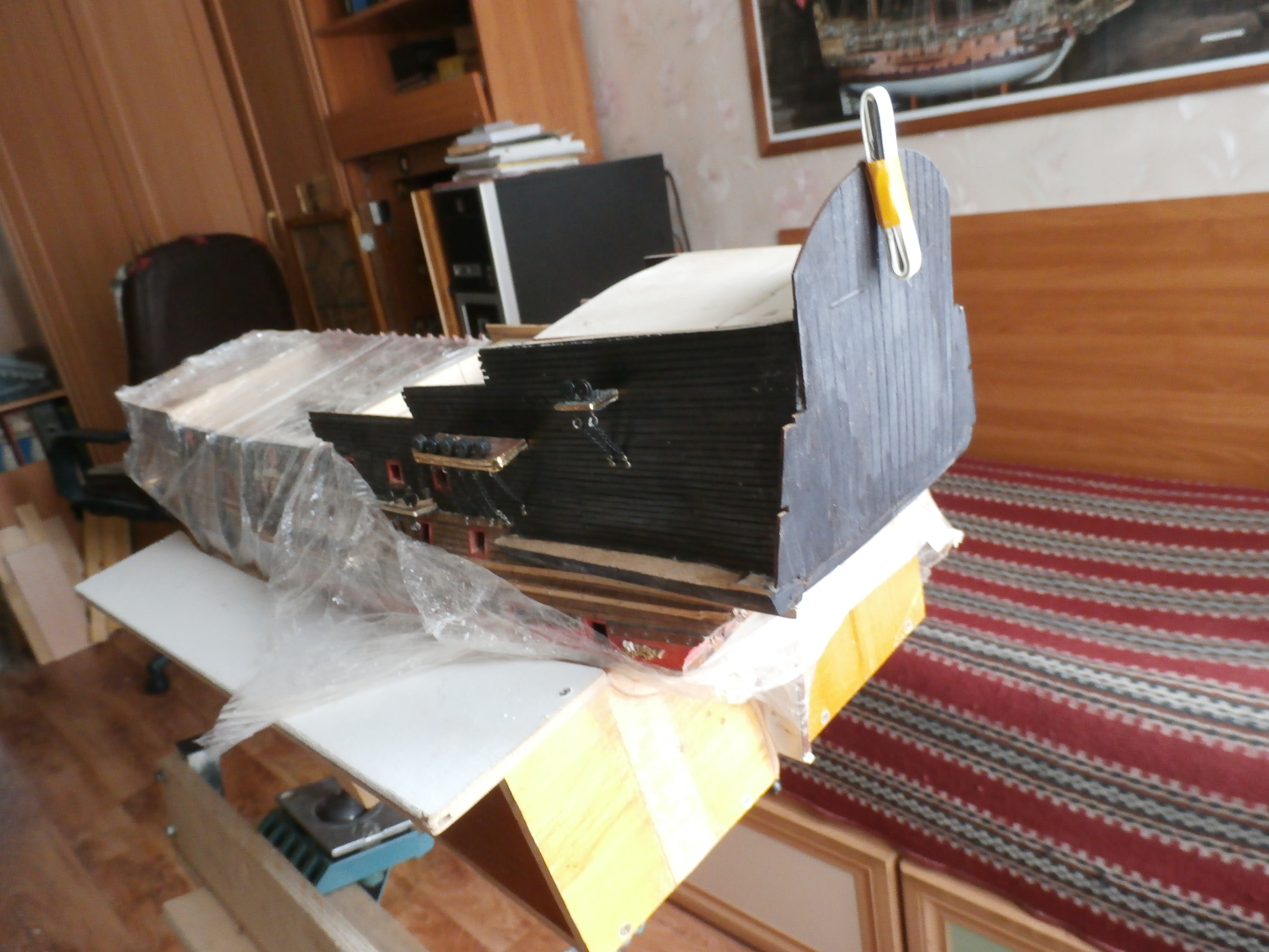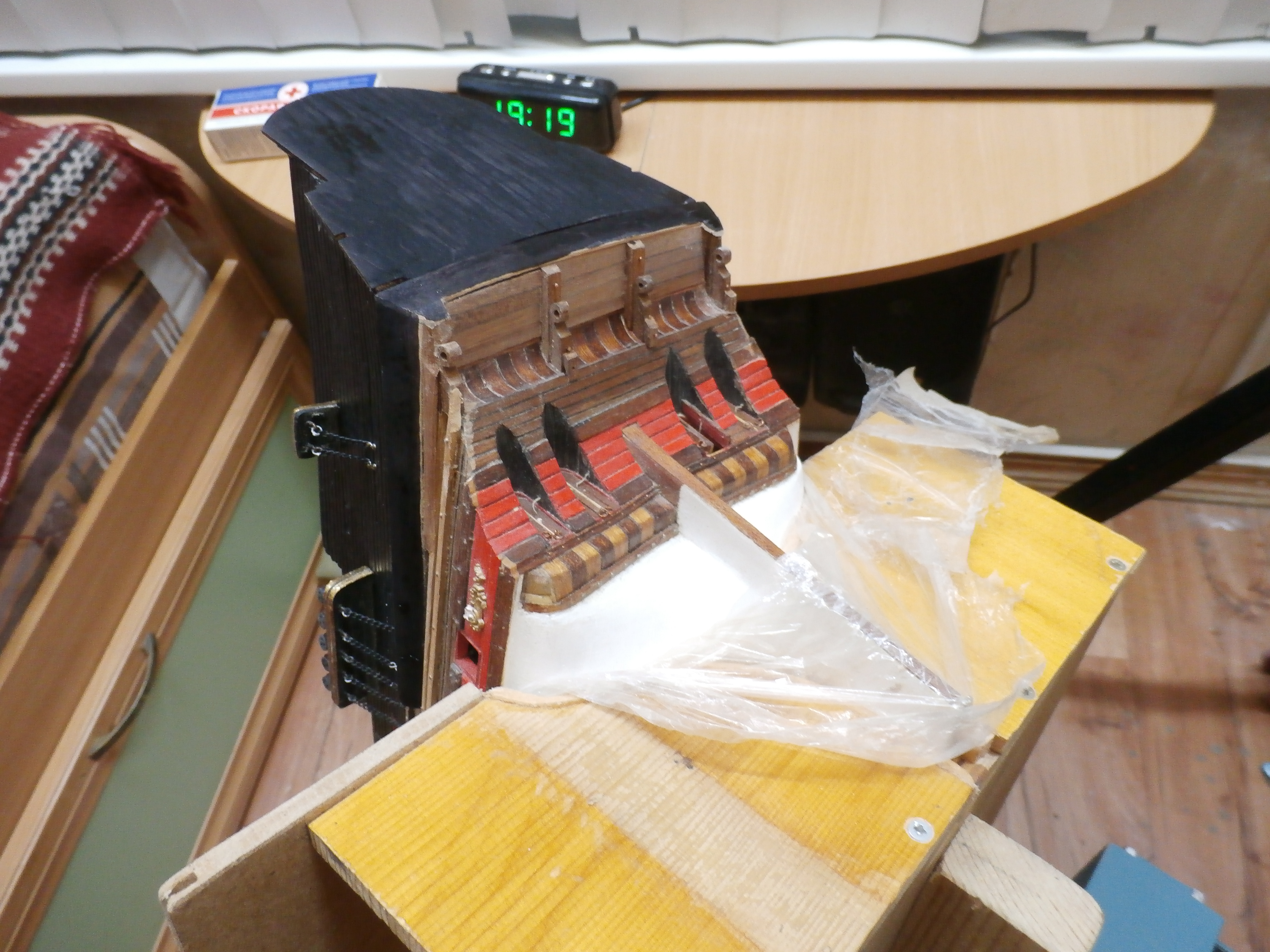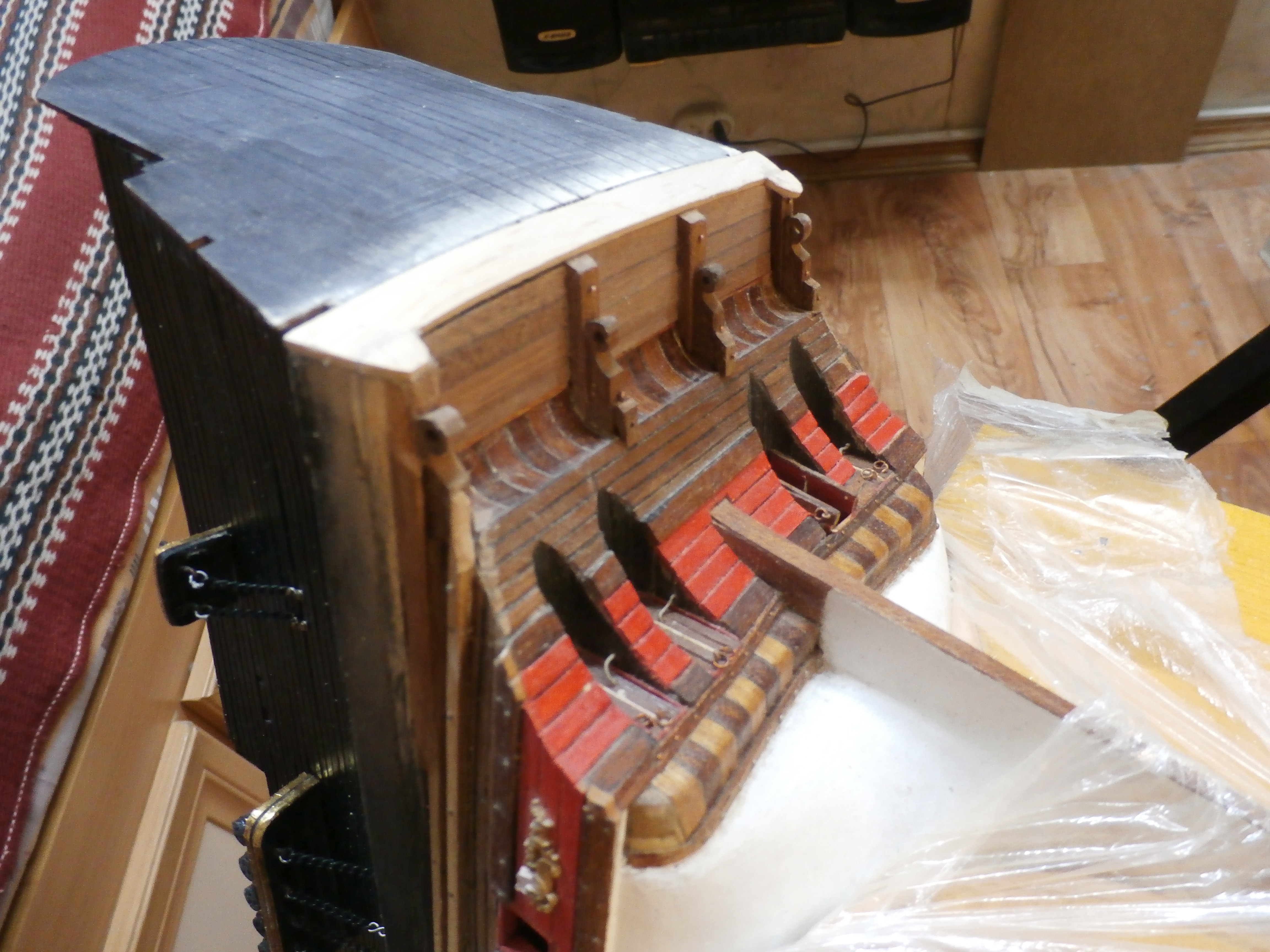 Я жив и работы на моей микро верфи, что на письменном столе продолжаются. В настоящее время занимаюсь обустройством кормового окончания (оконечности) корпуса своей модели: английского парусного линейного корабля "Повелитель морей".